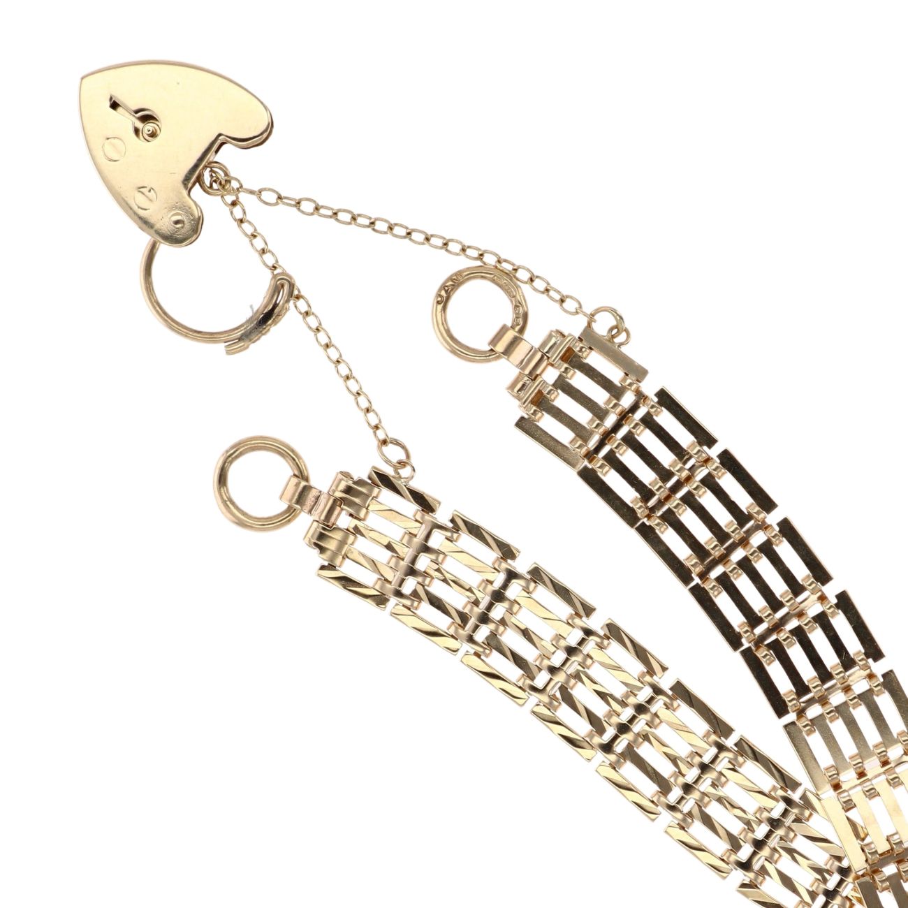 9ct Yellow Gold Heart Lock Gate Bracelet 6"