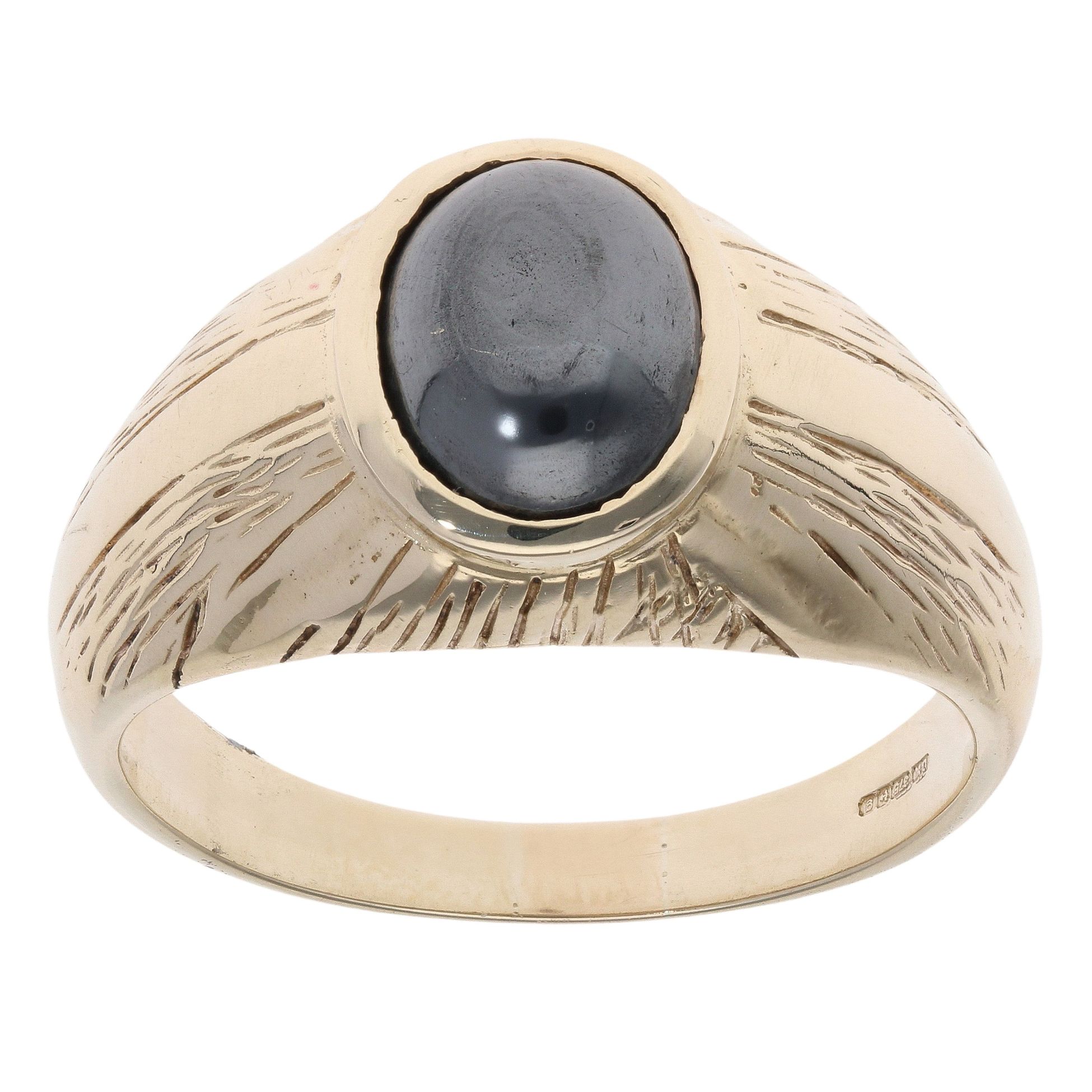 9ct Yellow Gold Hematite Cabochon Signet Ring
