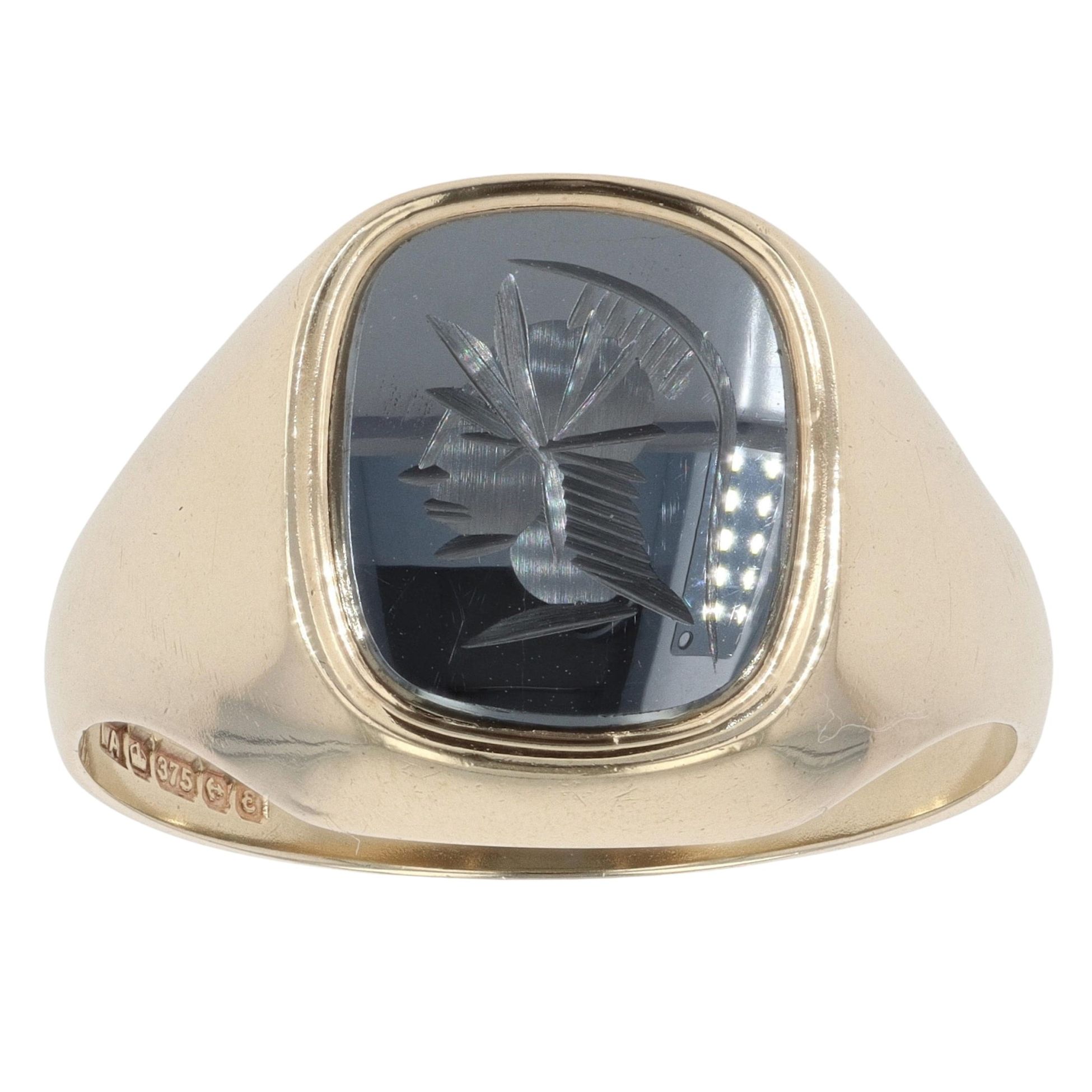 9ct Yellow Gold Hematite Centurian Signet Ring