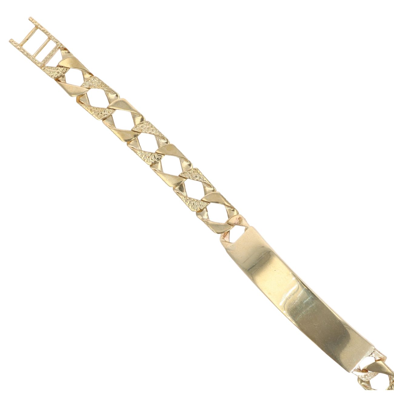 9ct Yellow Gold ID Patternd and Plain Curb Bracelet 7.5"