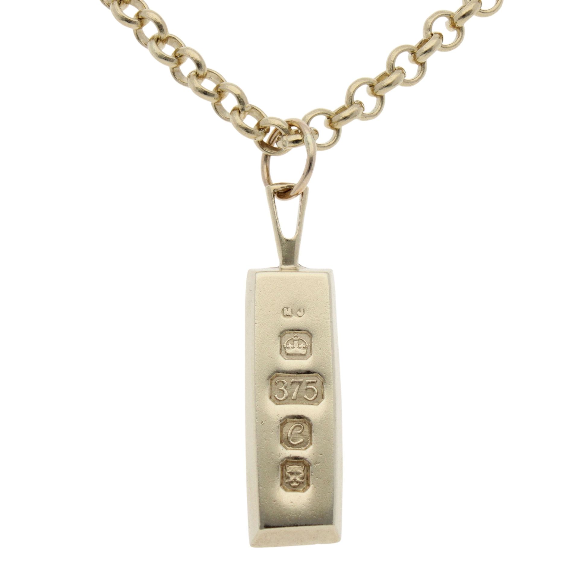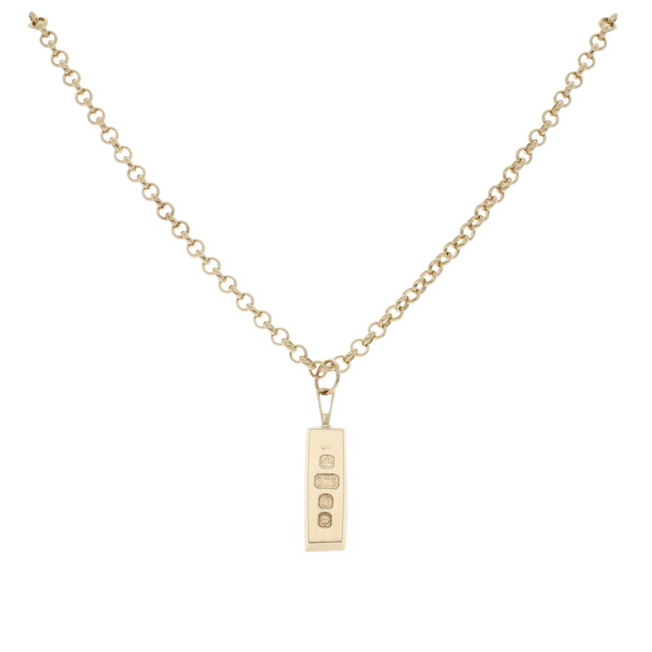 9ct Yellow Gold Ingot Pendant And Chain 18"