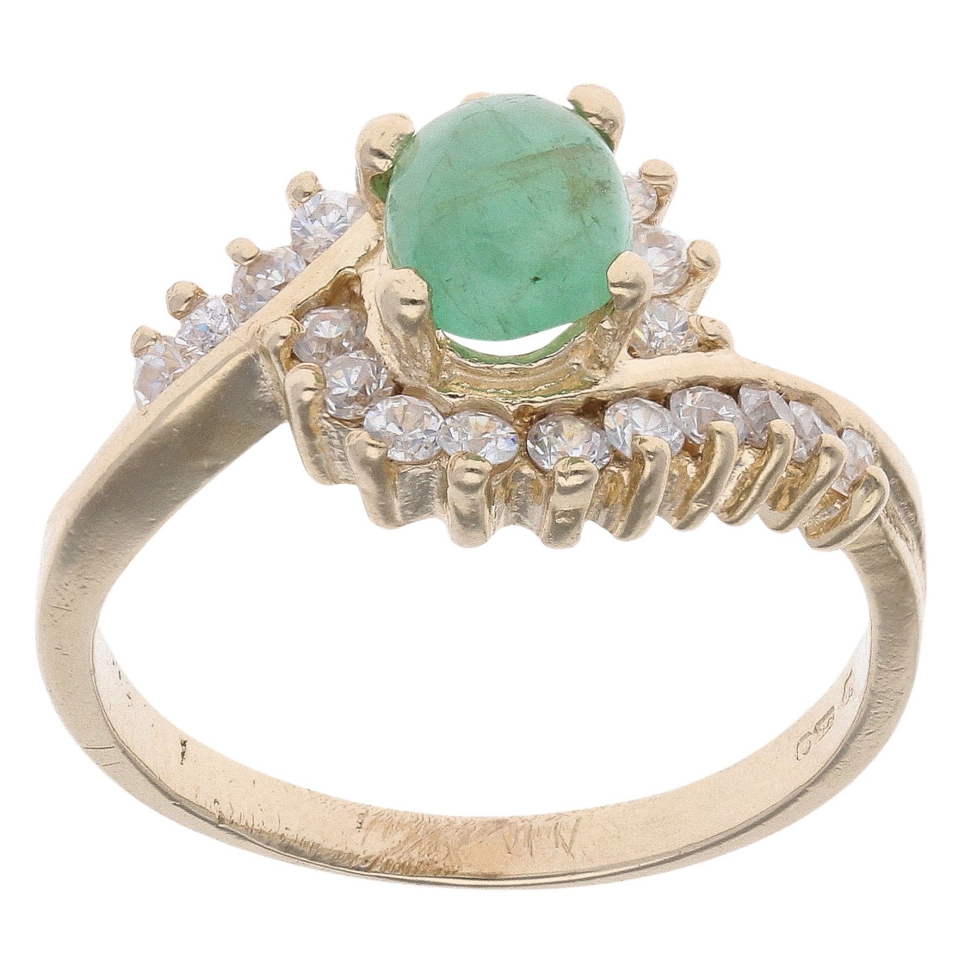9ct Yellow Gold Jade And Cubic Zirconia Ring