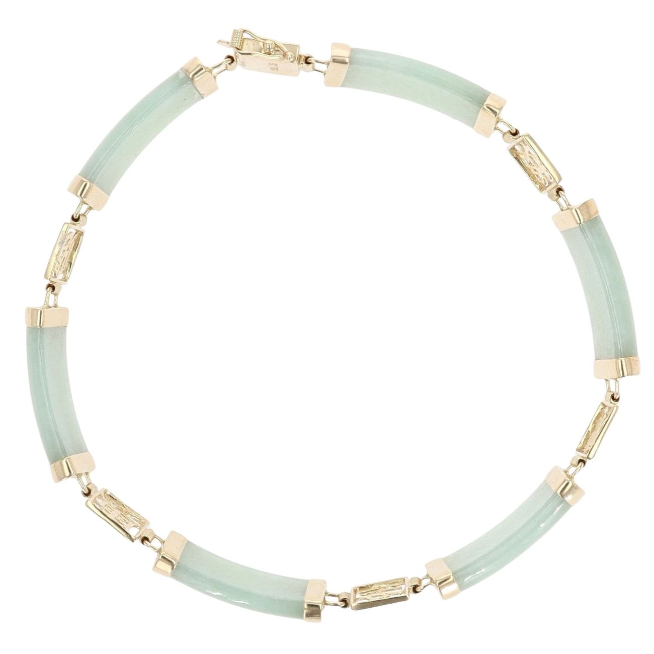 9ct Yellow Gold Jade Stone Set Bracelet 7"