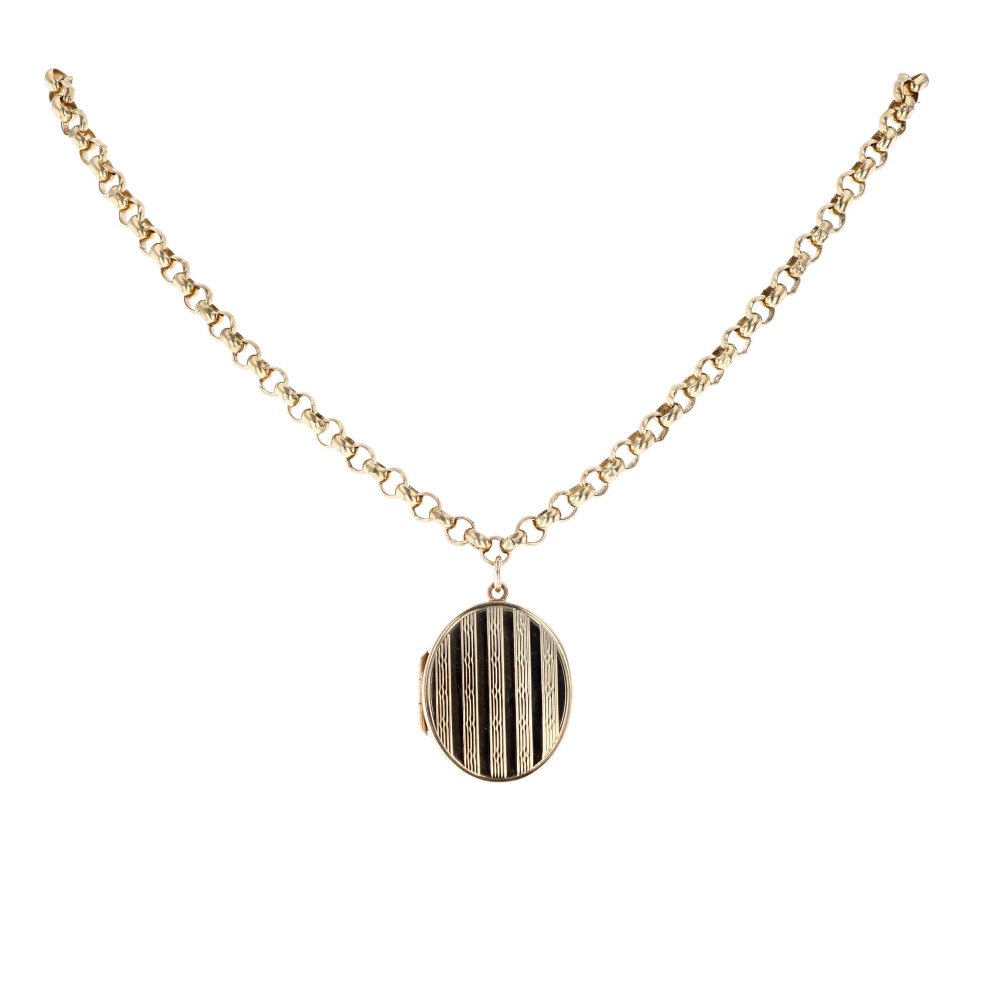 9ct Yellow Gold Locket and Belcher Chain 18"