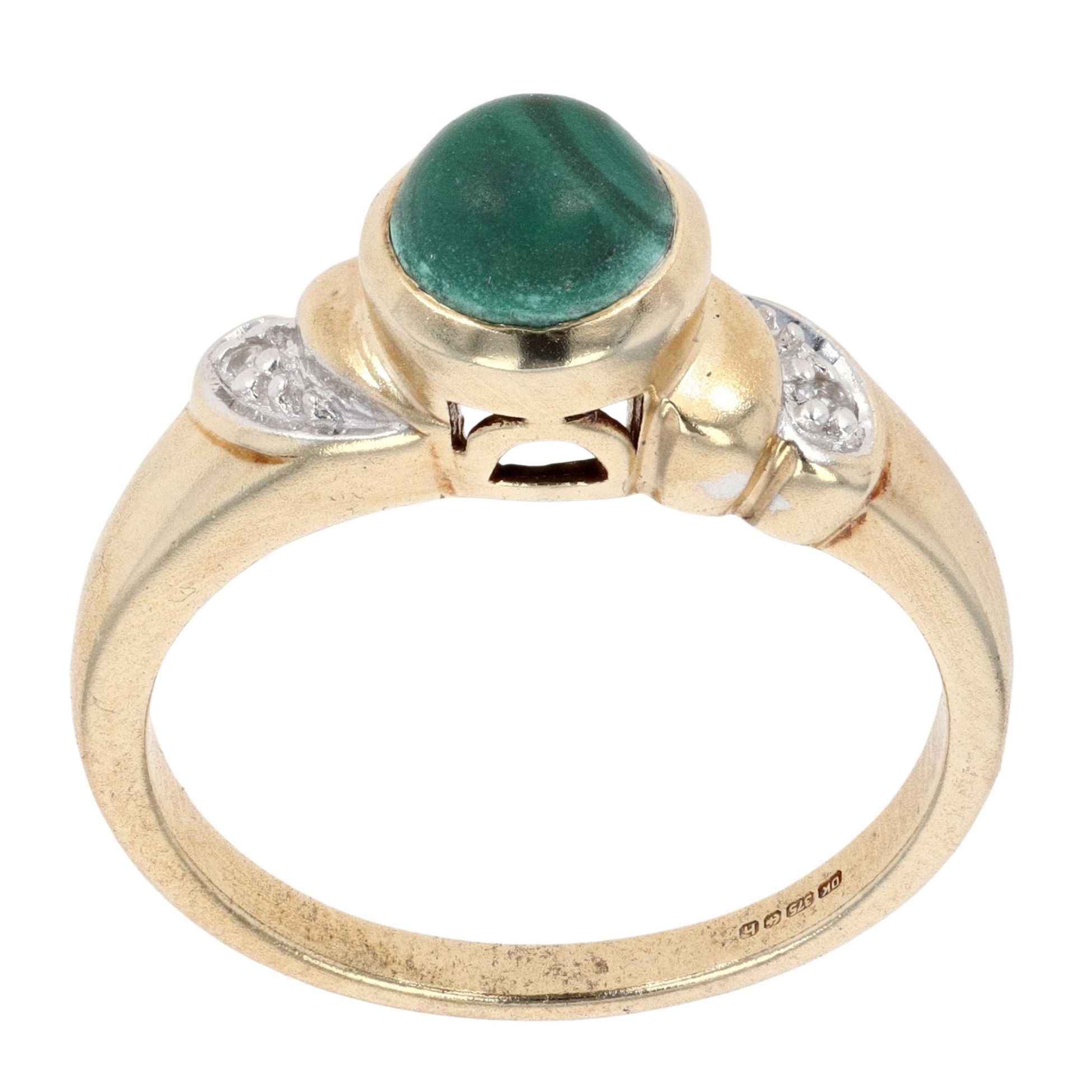 9ct Yellow Gold Malachite And 0.02ct Diamond Ring