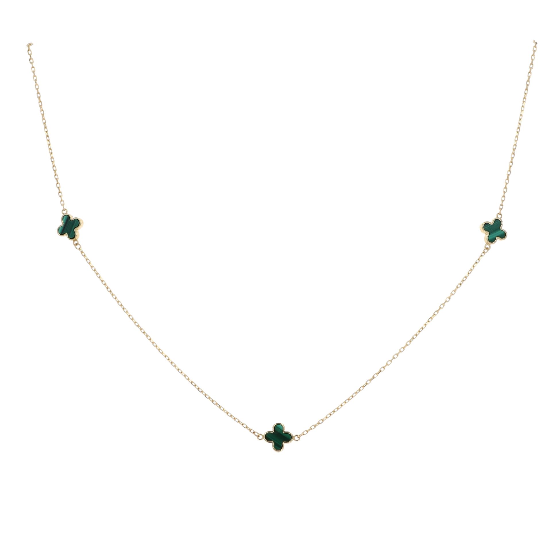 9ct Yellow Gold Malachite Petal Necklace 16"