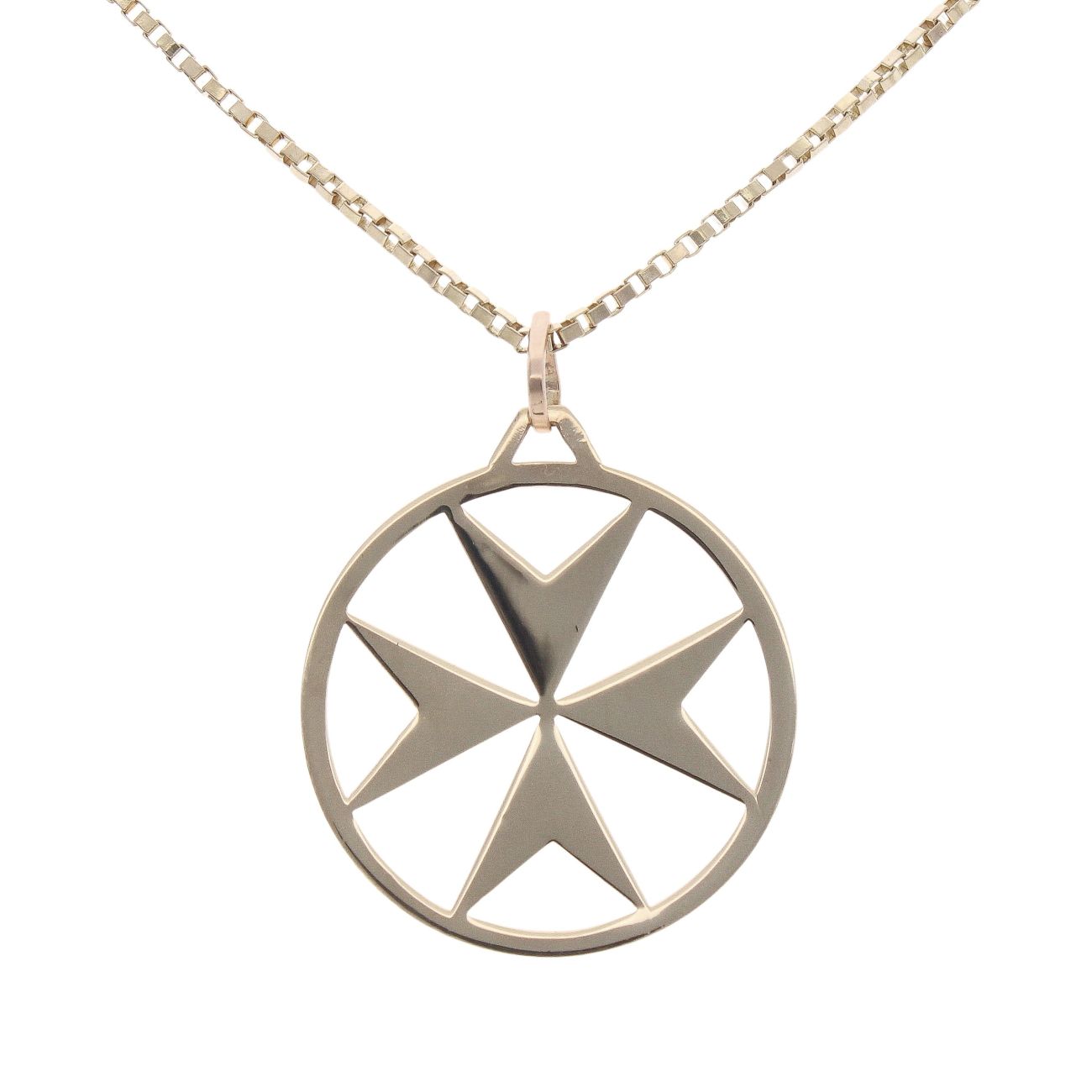 9ct Yellow Gold Maltese Cross Pendant And Chain 26"