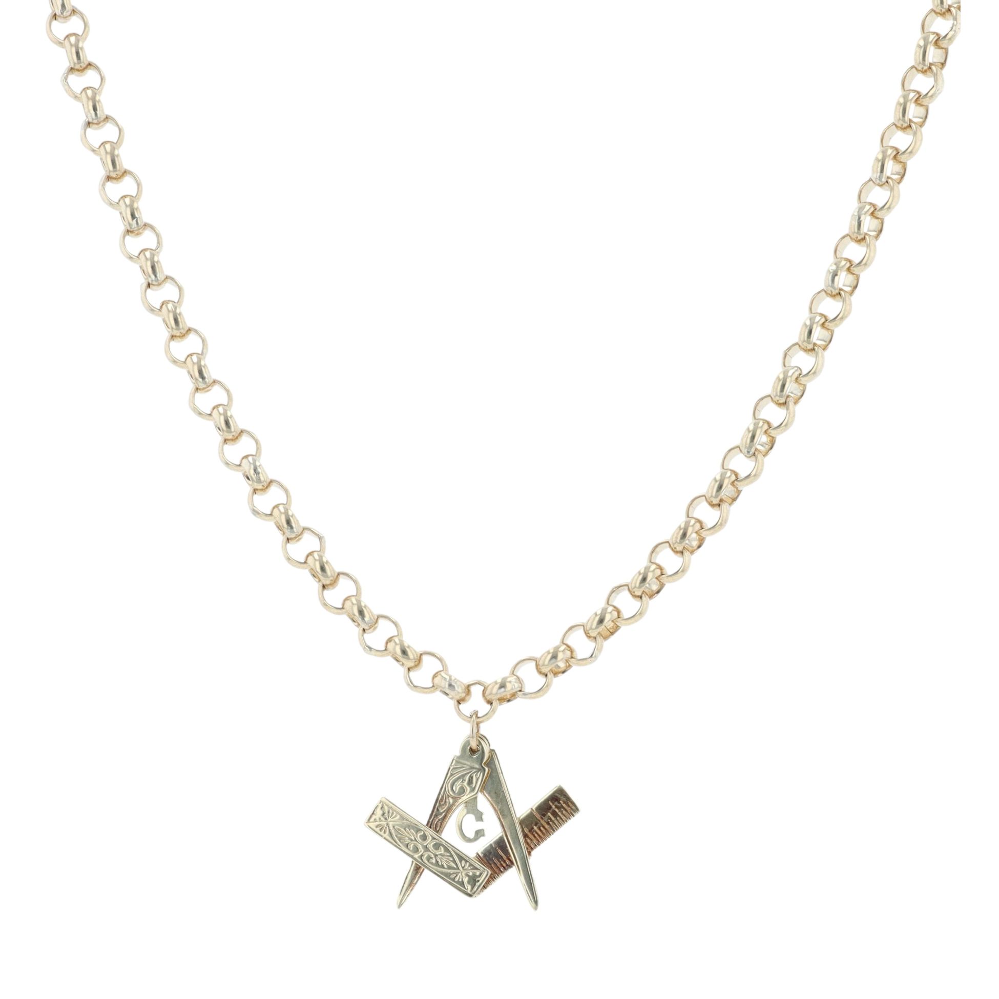 9ct Yellow Gold Masonic Pendant And Chain 20"