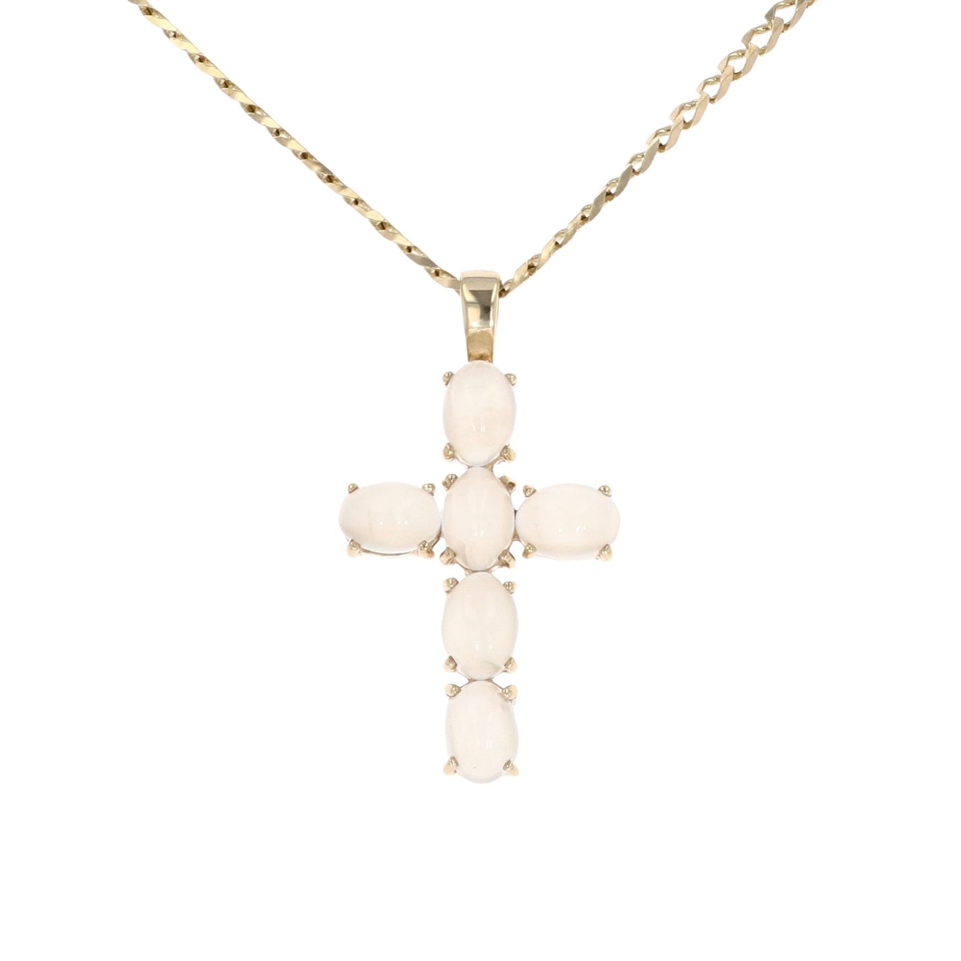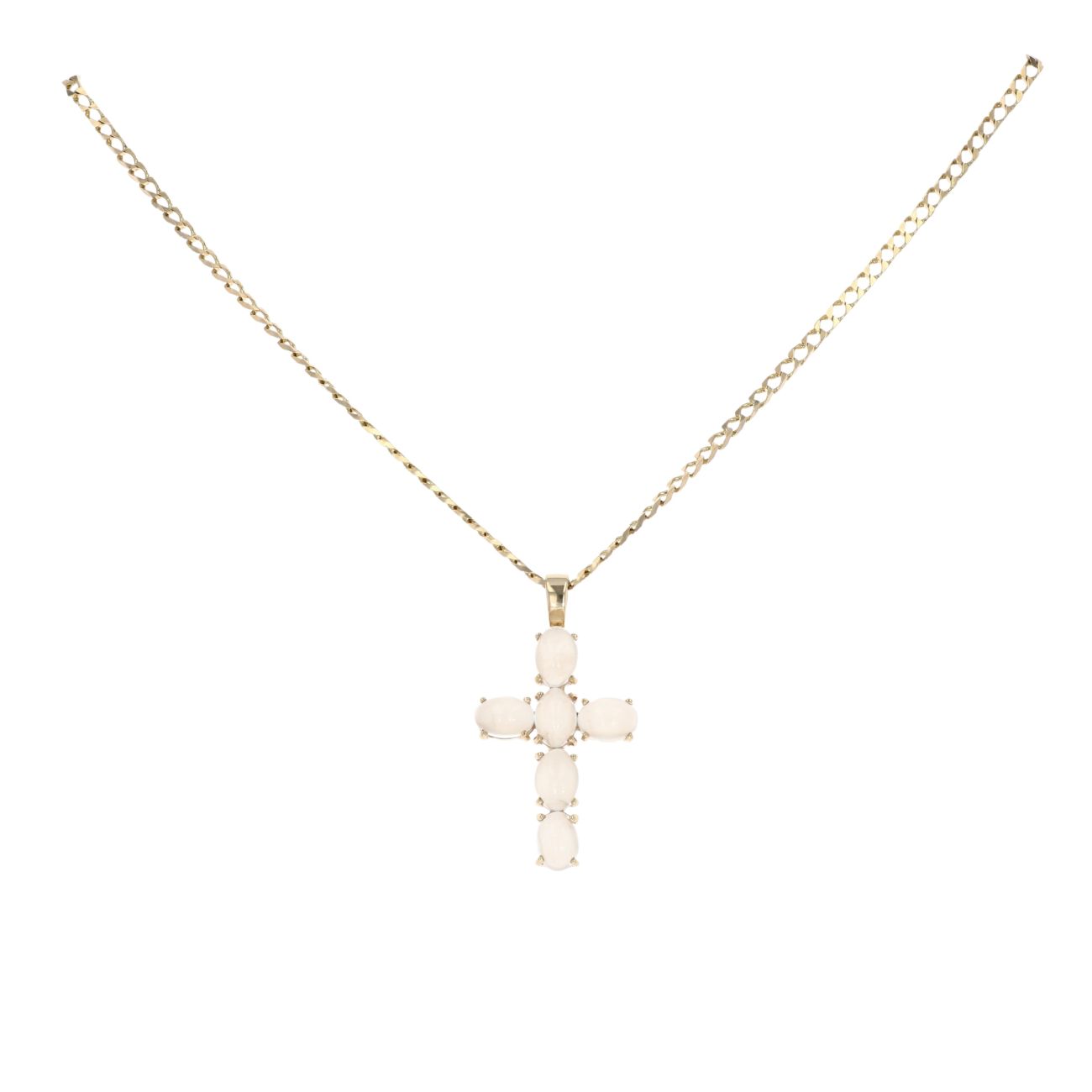 9ct Yellow Gold Moonstone Cross Pendant and Curb Chain 22"