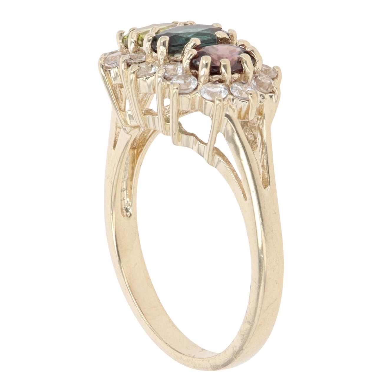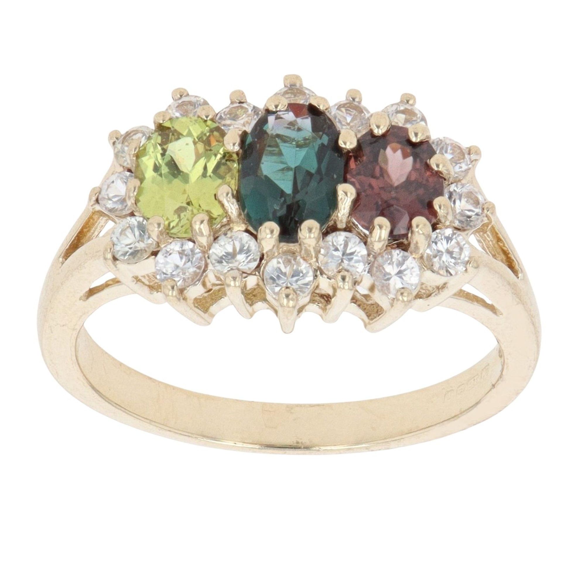 9ct Yellow Gold Multi-Gemstone And Cubic Zirconia Cluster Ring