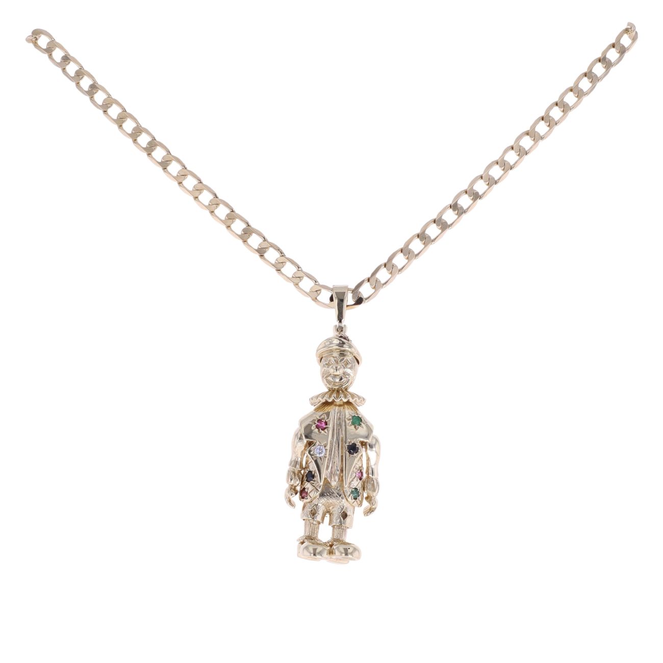 9ct Yellow Gold Multi-Gemstone Clown Pendant And Chain 18"