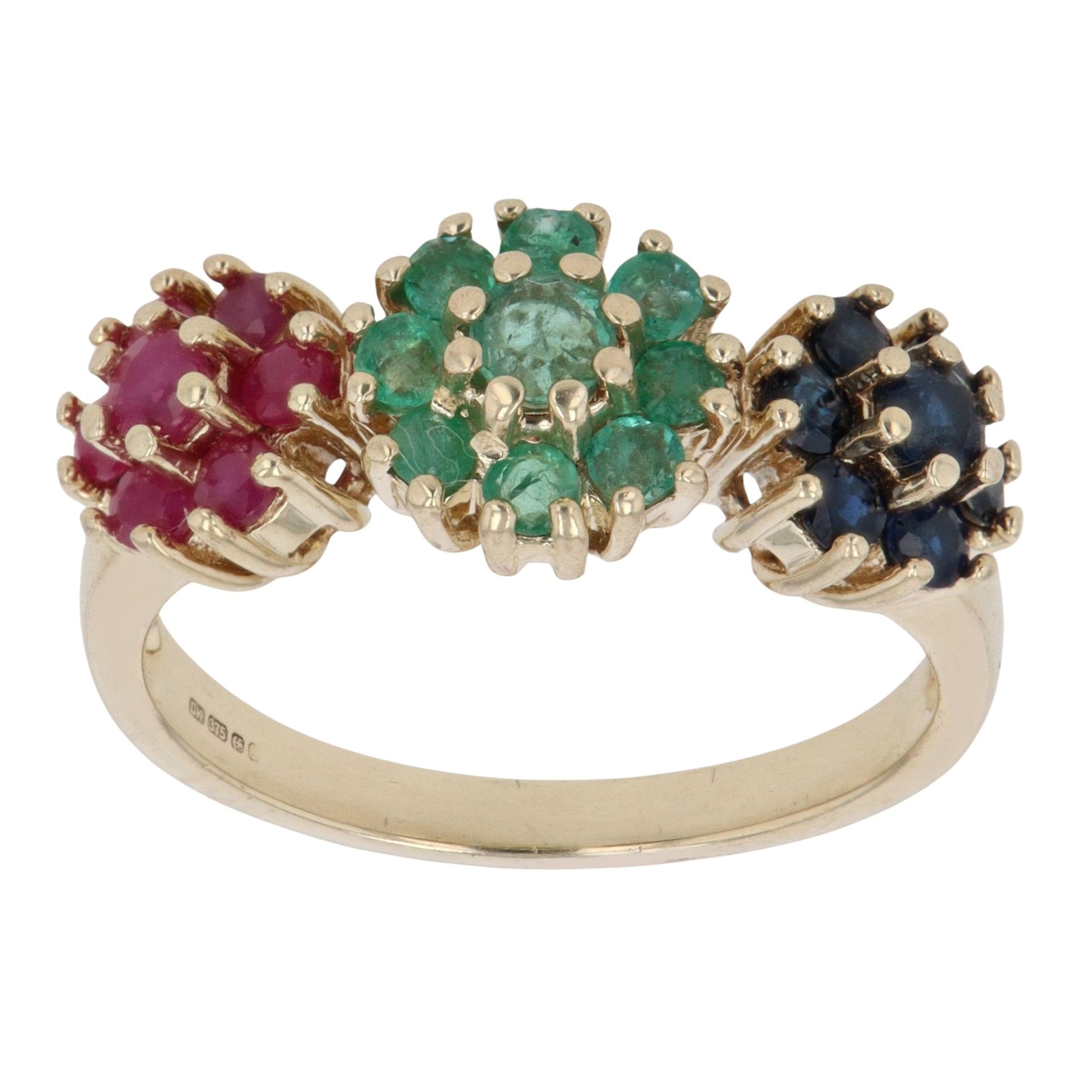 9ct Yellow Gold Multi Gemstone Cluster Ring
