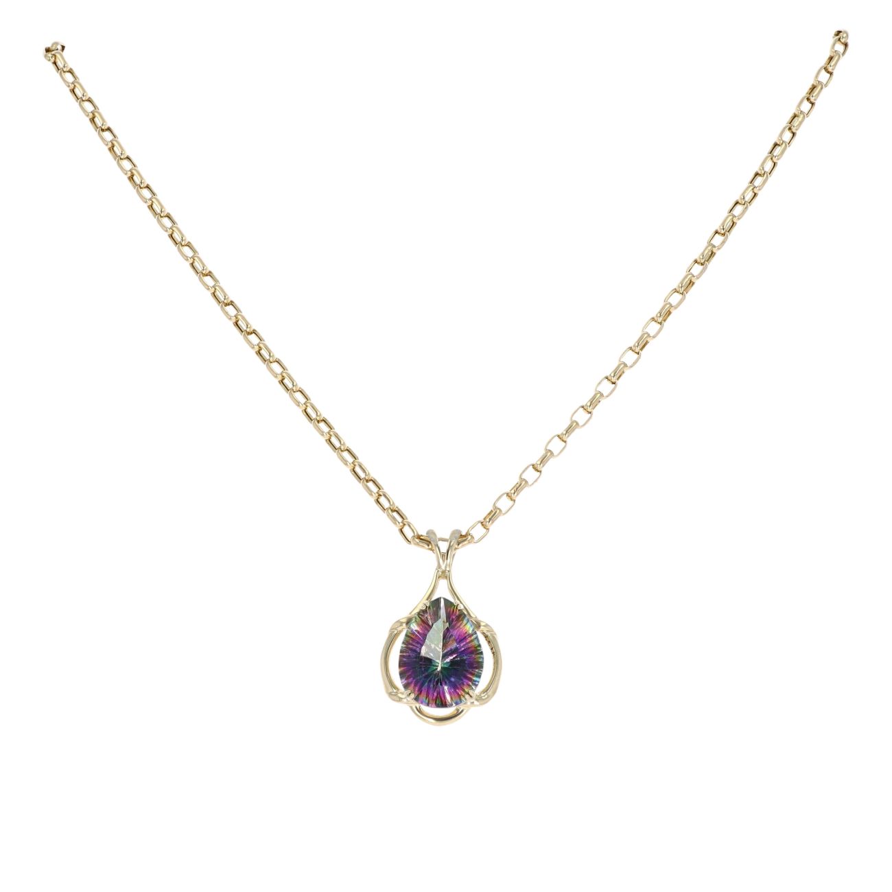 9ct Yellow Gold Mystic Topaz Pendant and Belcher Chain 20"