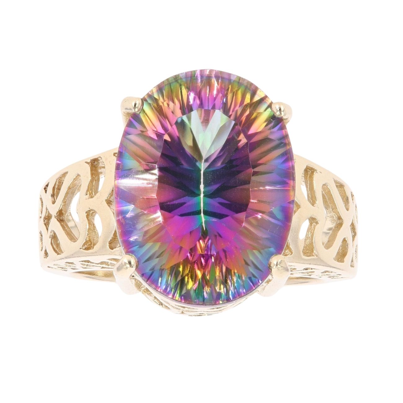 9ct Yellow Gold Mystic Topaz Single Stone Ring