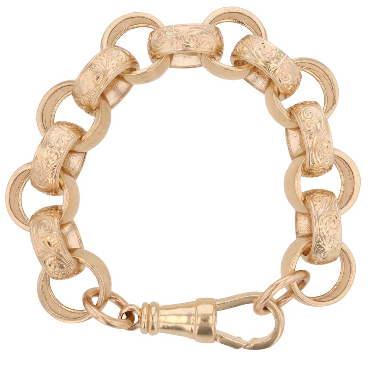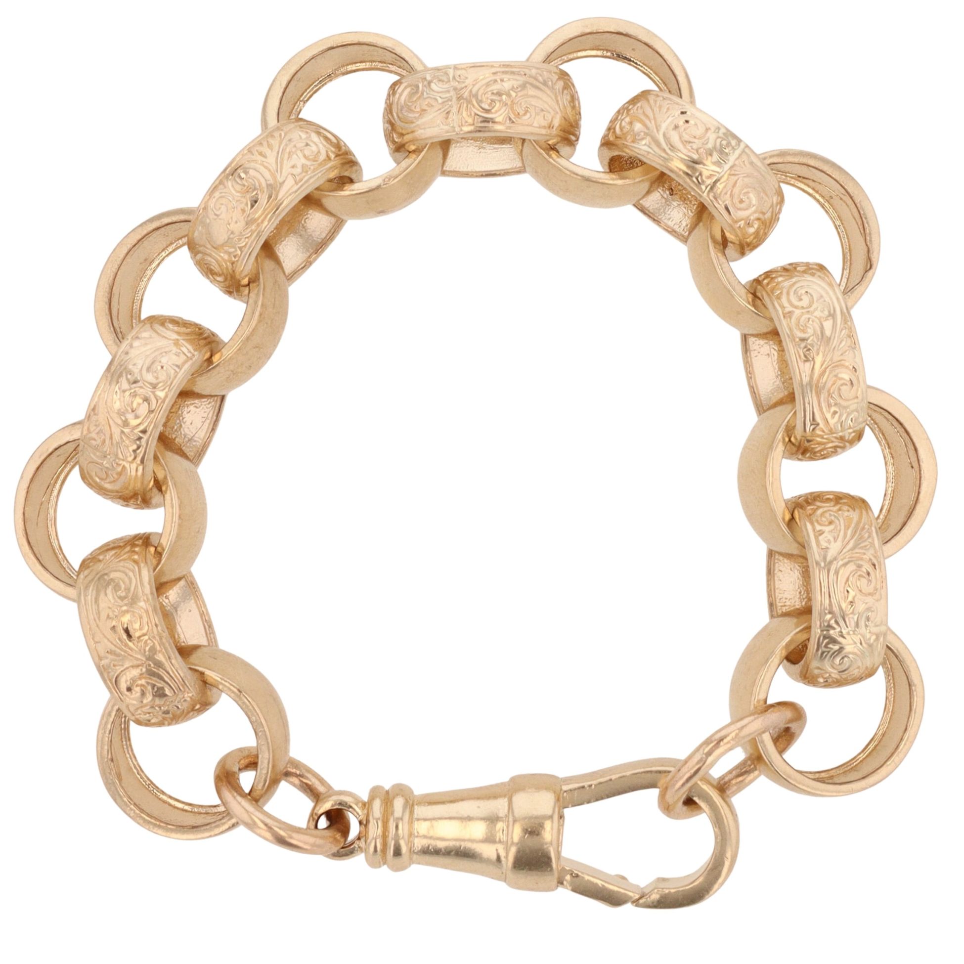 9ct Yellow Gold Patterned and Plain Belcher Bracelet 9"