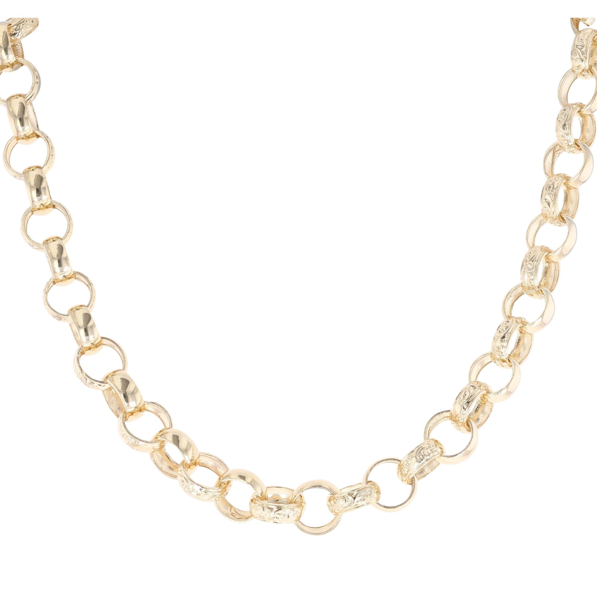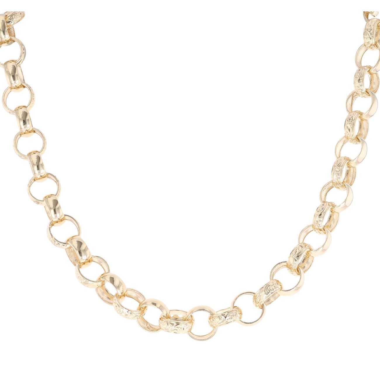 9ct Yellow Gold Patterned And Plain Belcher Chain 18"