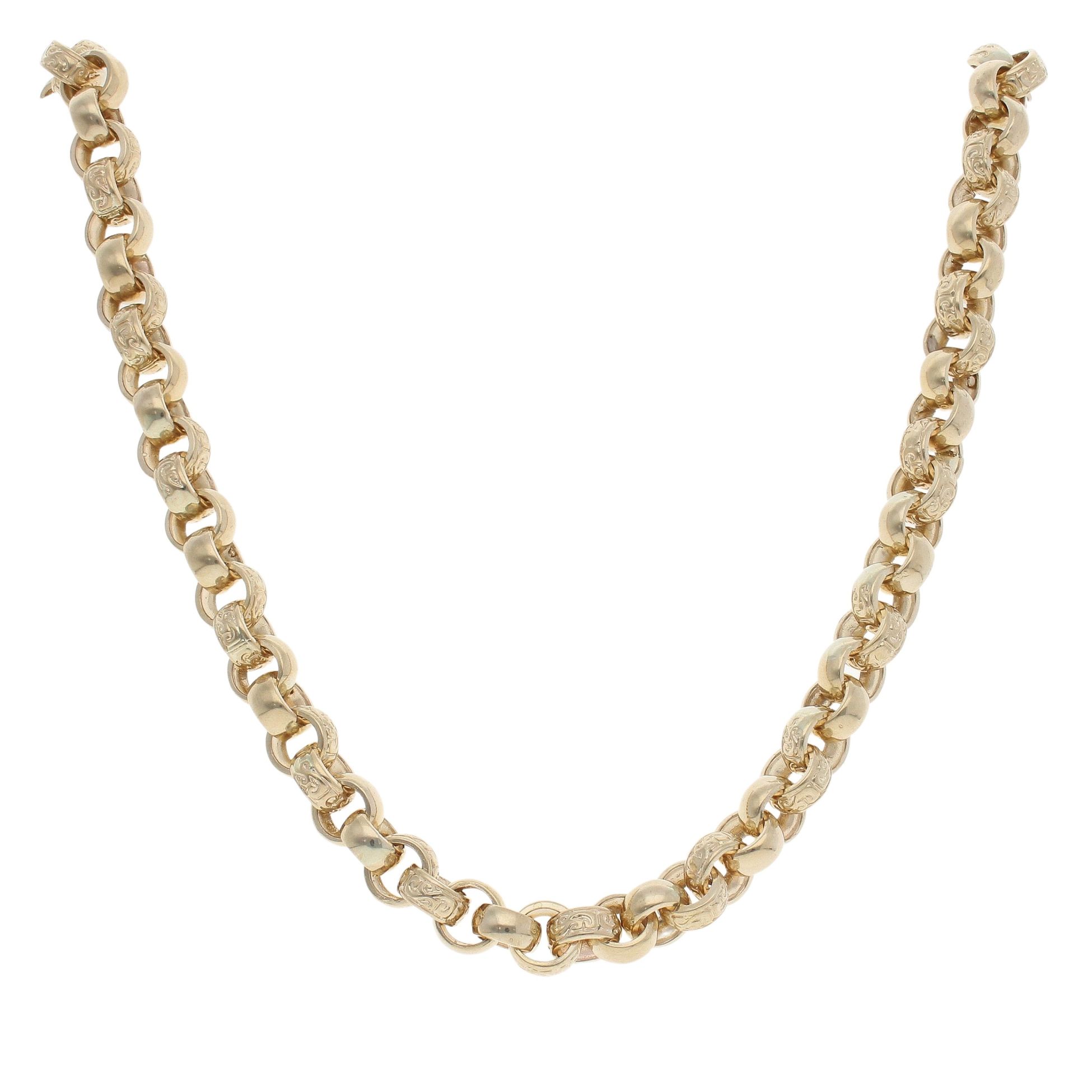 9ct Yellow Gold Patterned And Plain Belcher Chain 26"