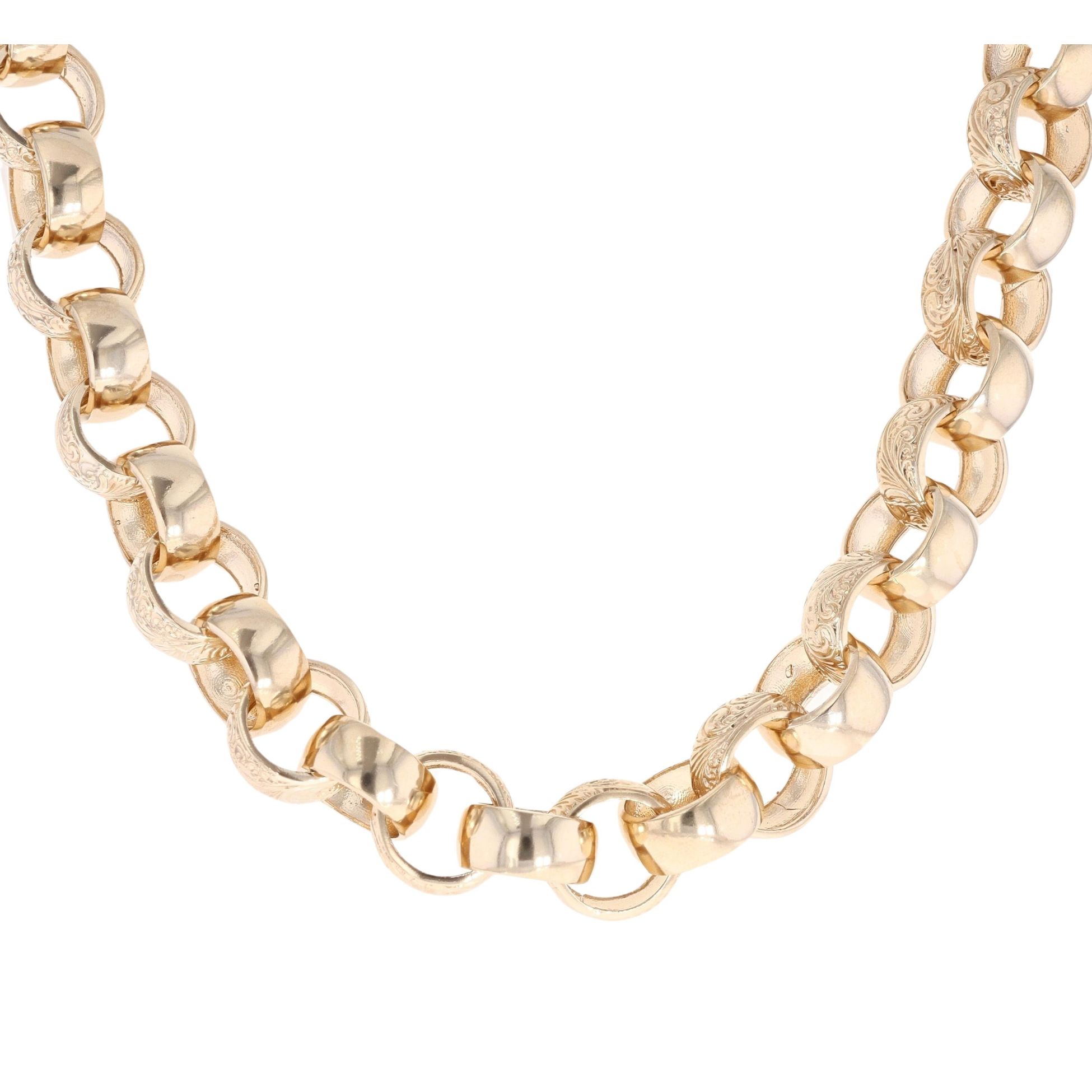 9ct Yellow Gold Patterned and Plain Belcher Chain 30"
