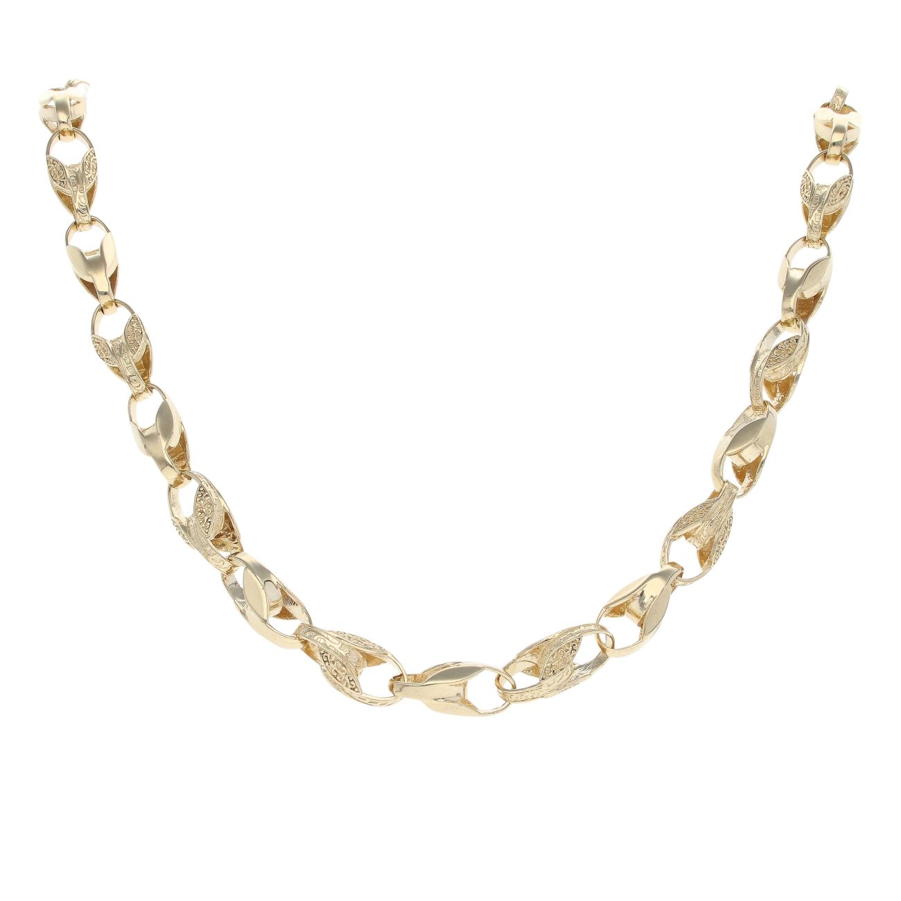 9ct Yellow Gold Patterned And Plain Tulip Chain 20"