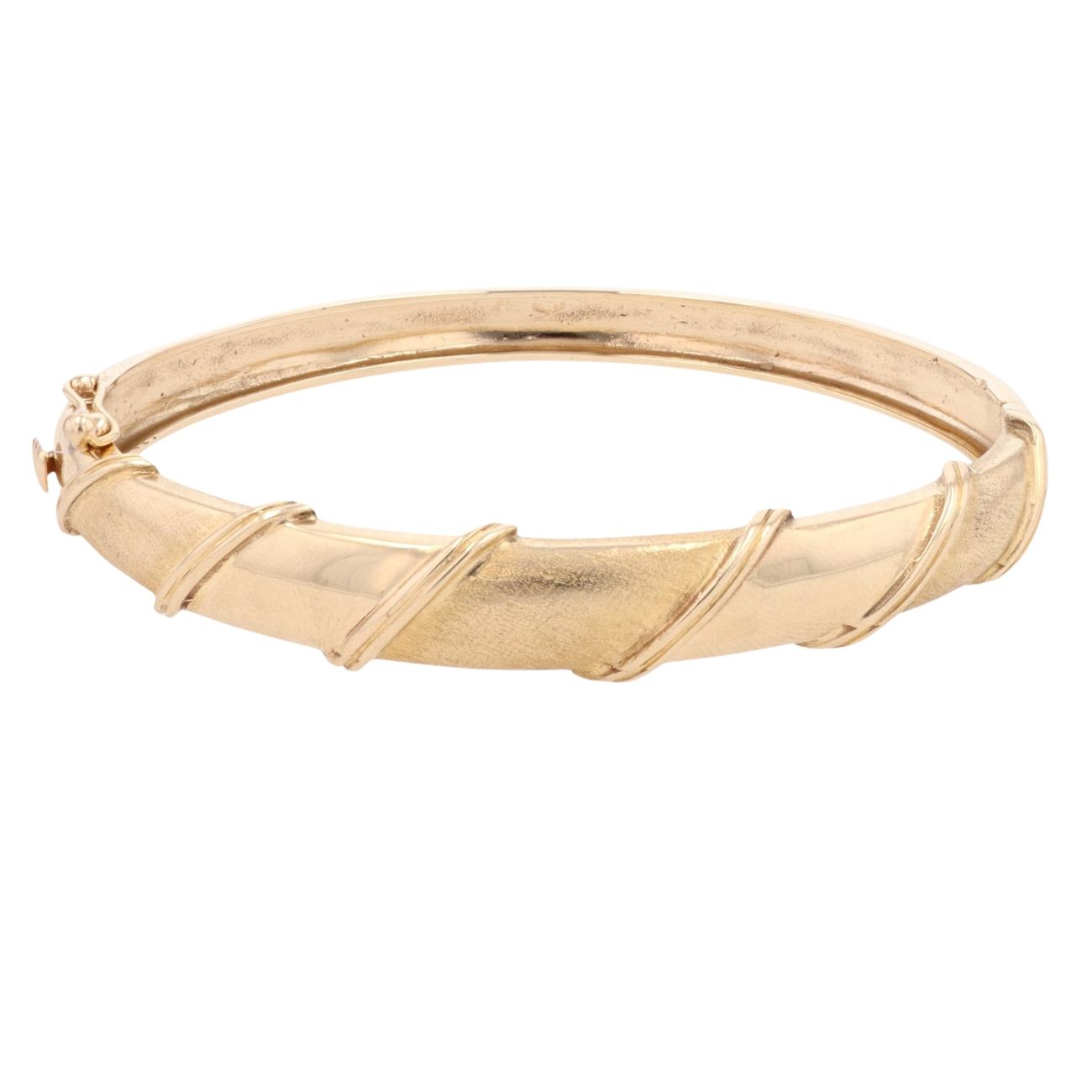 9ct Yellow Gold Patterned and Textured Hinged Bangle