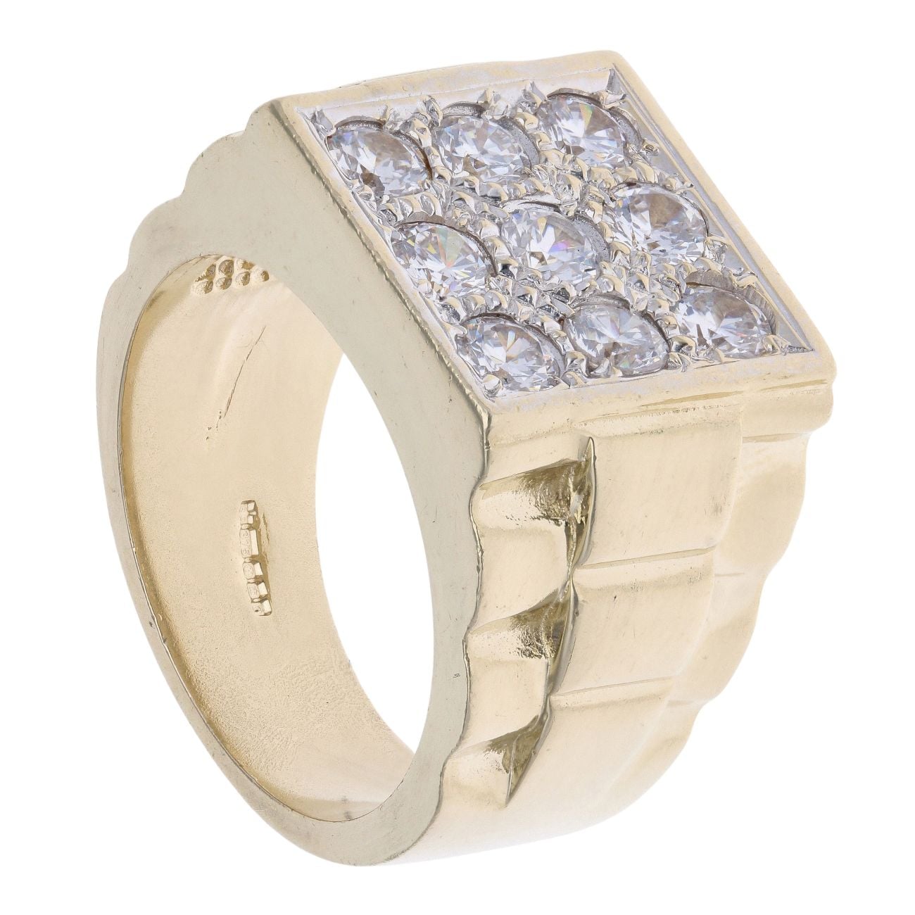 9ct Yellow Gold Patterned Cubic Zirconia Signet Ring