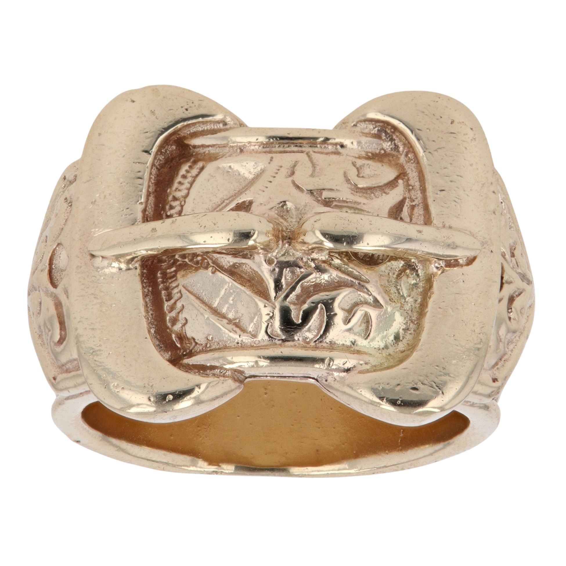 9ct Yellow Gold Patterned Double Buckle Ring