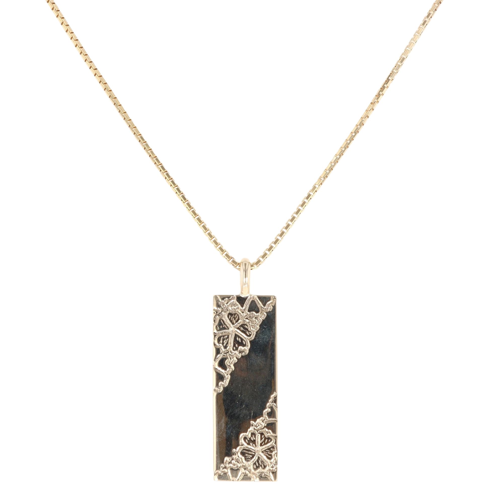9ct Yellow Gold Patterned Ingot Pendant and Chain 24"
