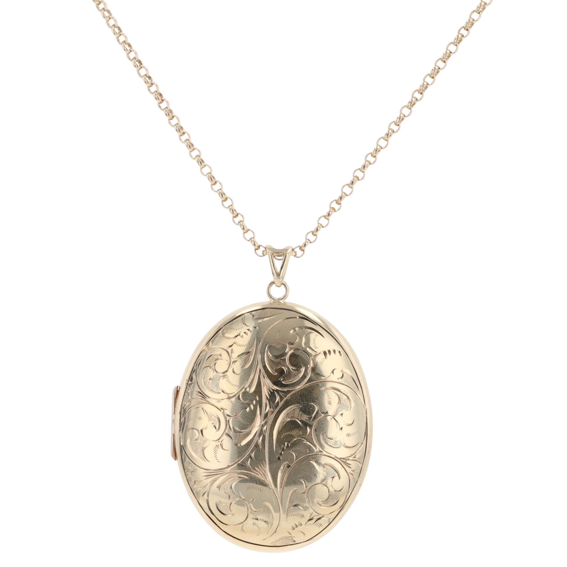 9ct Yellow Gold Patterned Locket Pendant And Chain 22"