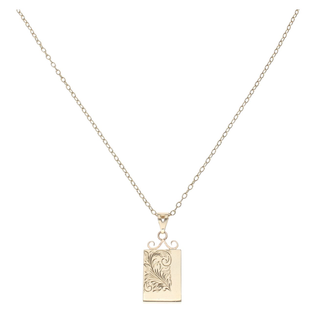 9ct Yellow Gold Patterned Pendant And Belcher Chain 26"