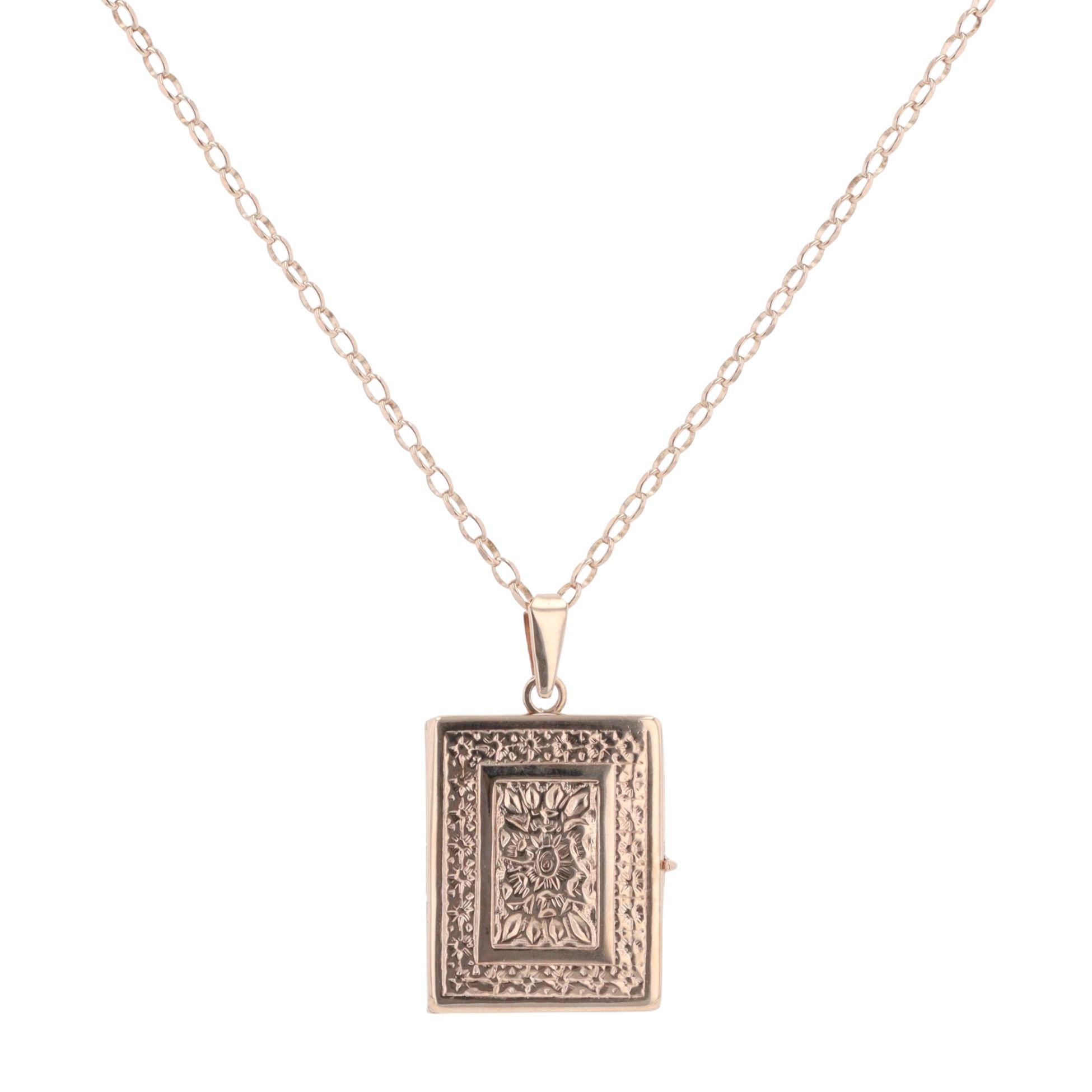 9ct Yellow Gold Patterned Rectangular Locket Pendant And Chain 20"