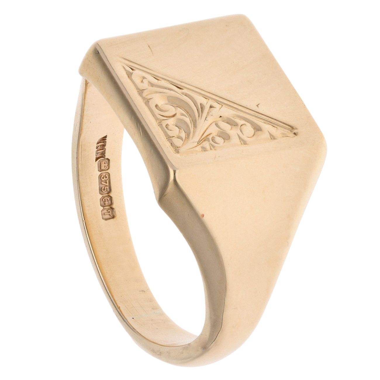 9ct Yellow Gold Patterned Square Signet Ring