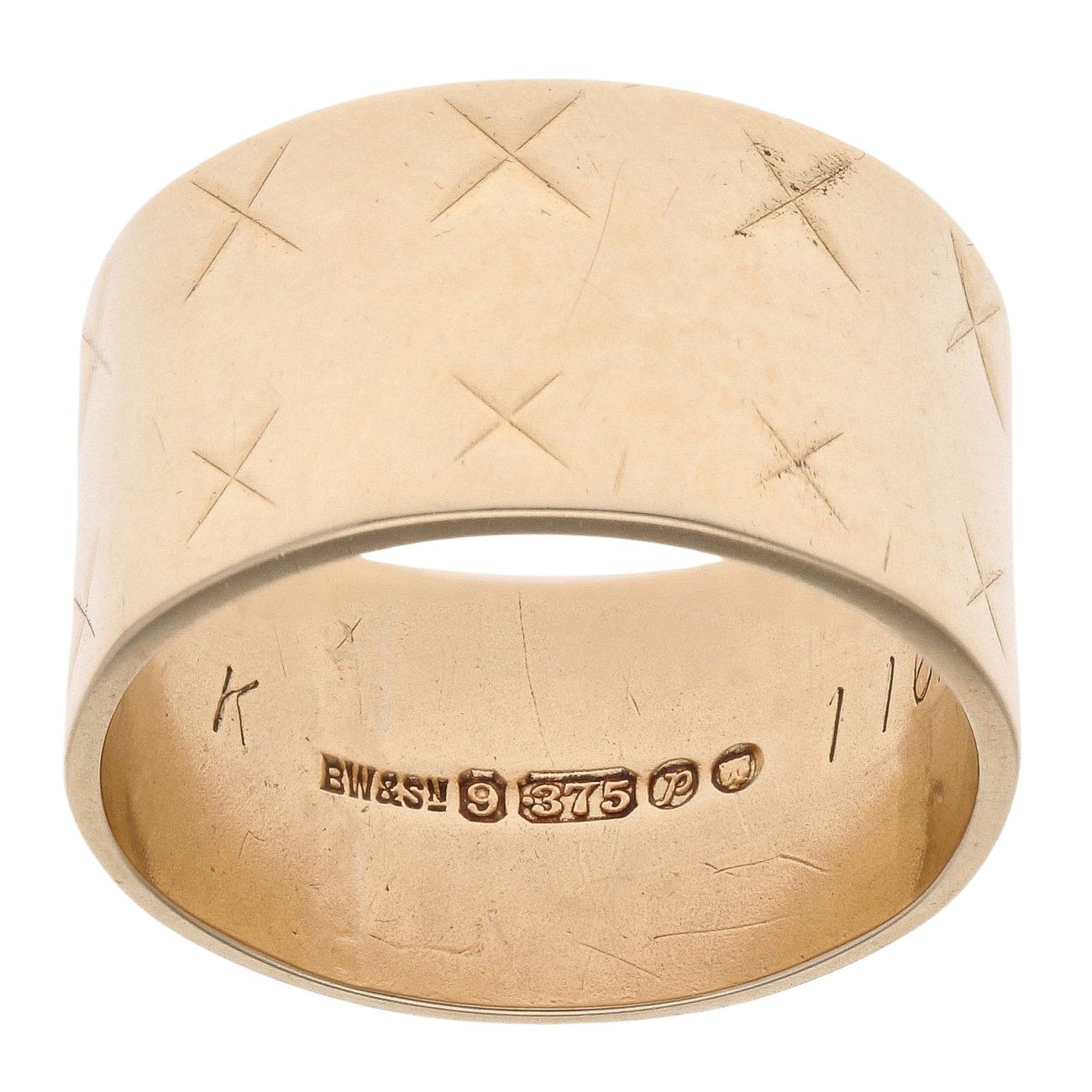 9ct Yellow Gold Patterned Wedding Band 10.1mm