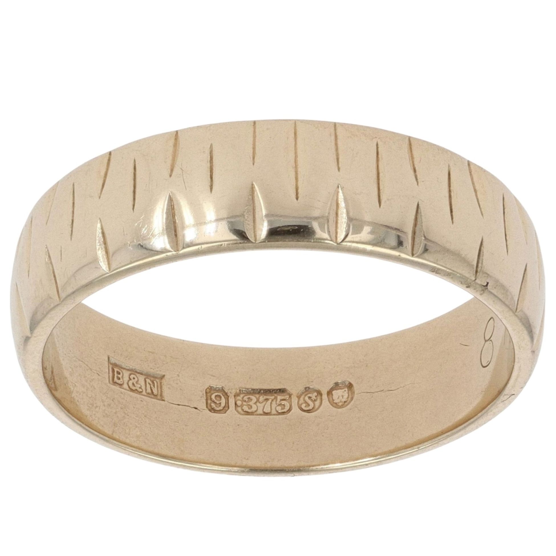 9ct Yellow Gold Patterned Wedding Band 5.4mm