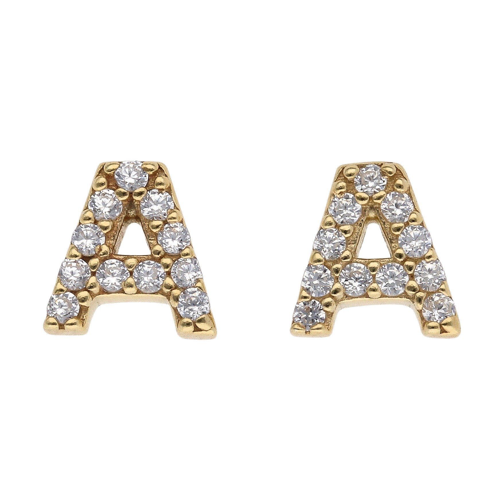9ct Yellow Gold Personalised Block Cubic Zirconia Initial Earring Studs