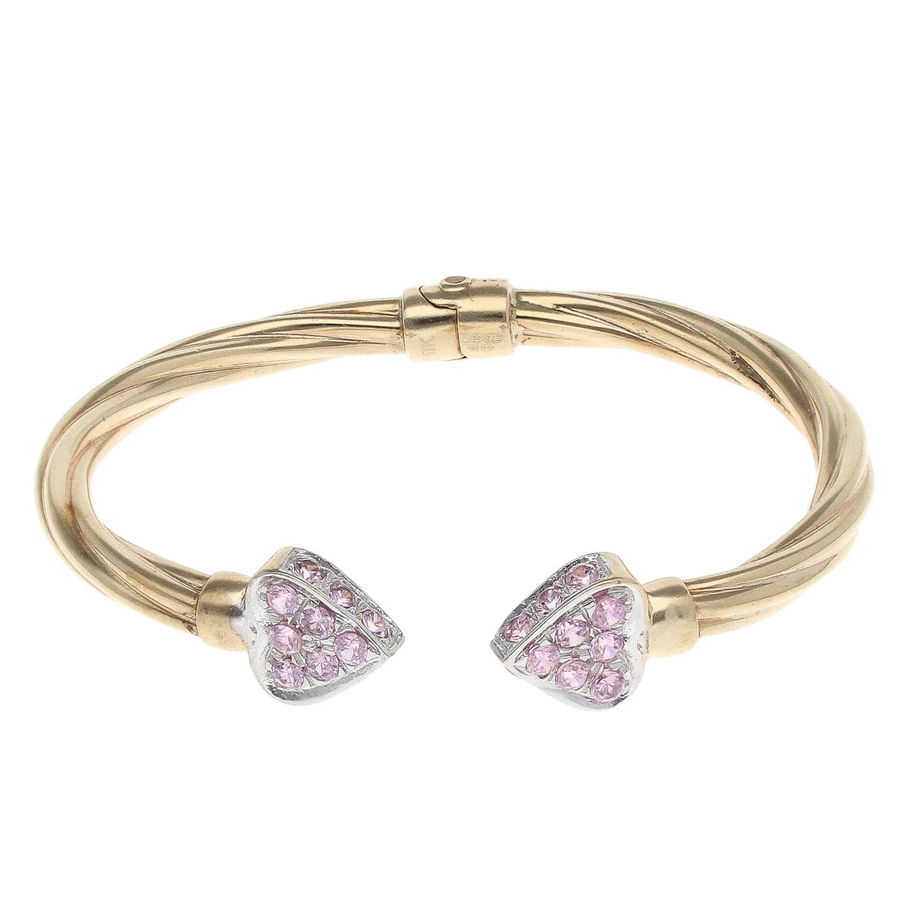 9ct Yellow Gold Pink Cubic Zirconia Heart Twist Patterned Torque Bangle