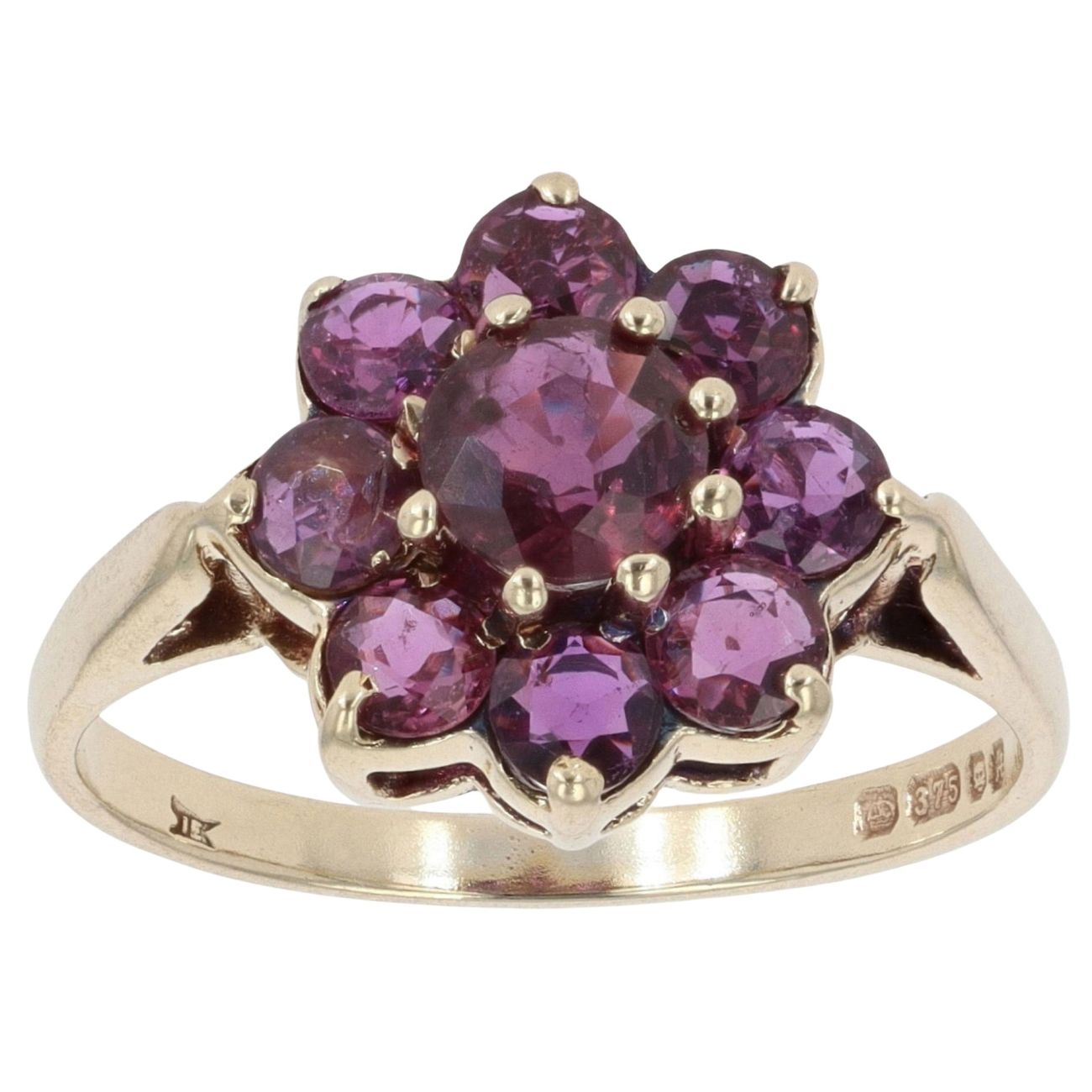 9ct Yellow Gold Pink Garnet Cluster Ring