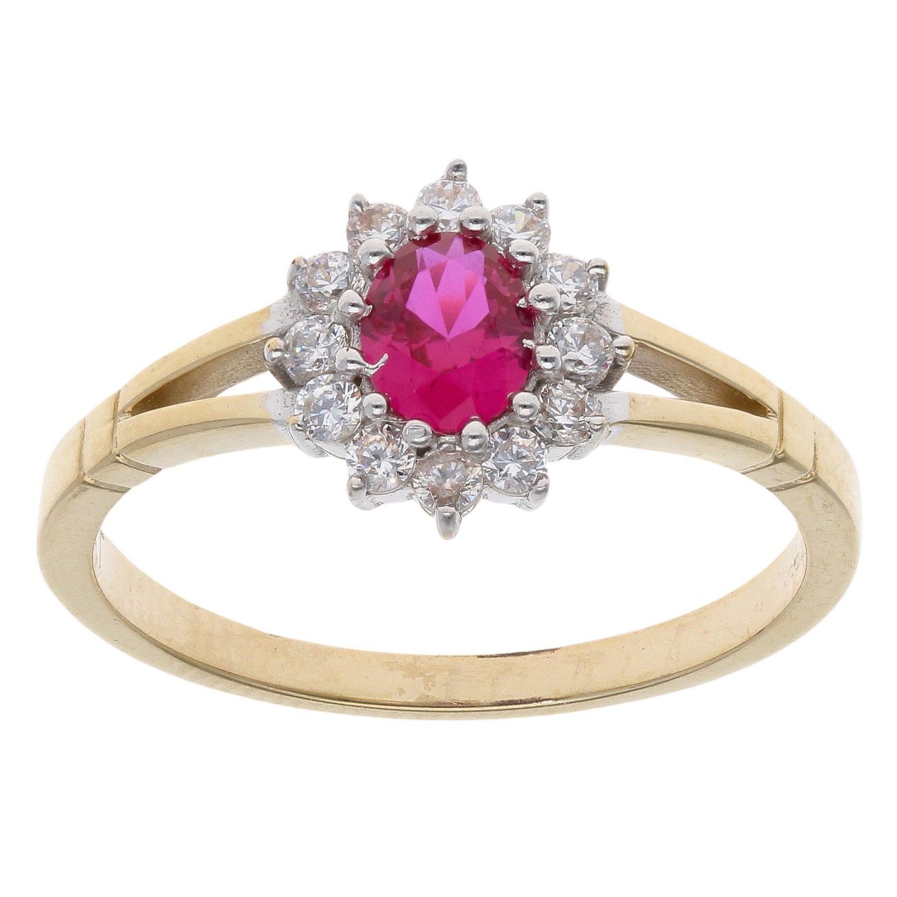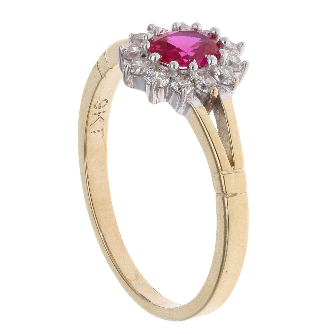 9ct Yellow Gold Pink Gemstone And Cubic Zirconia Cluster Ring