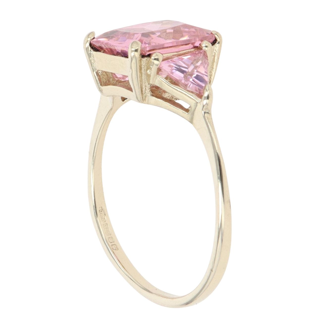 9ct Yellow Gold Pink Quartz Three Stone Ring