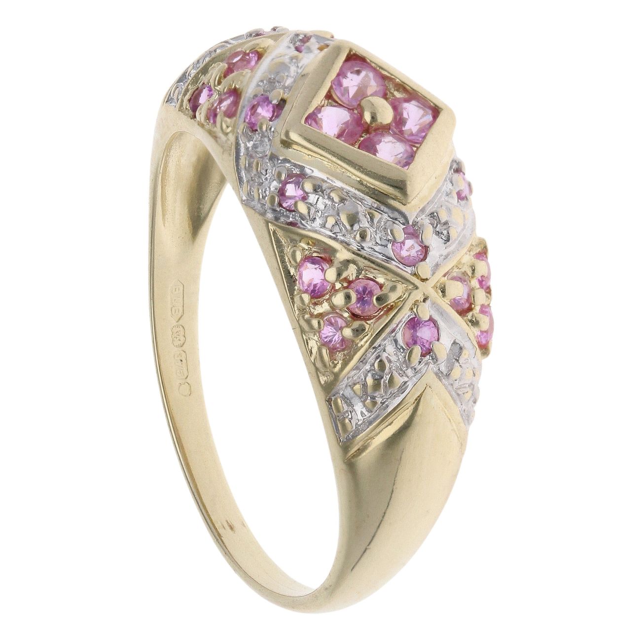 9ct Yellow Gold Pink Sapphire Cluster Ring