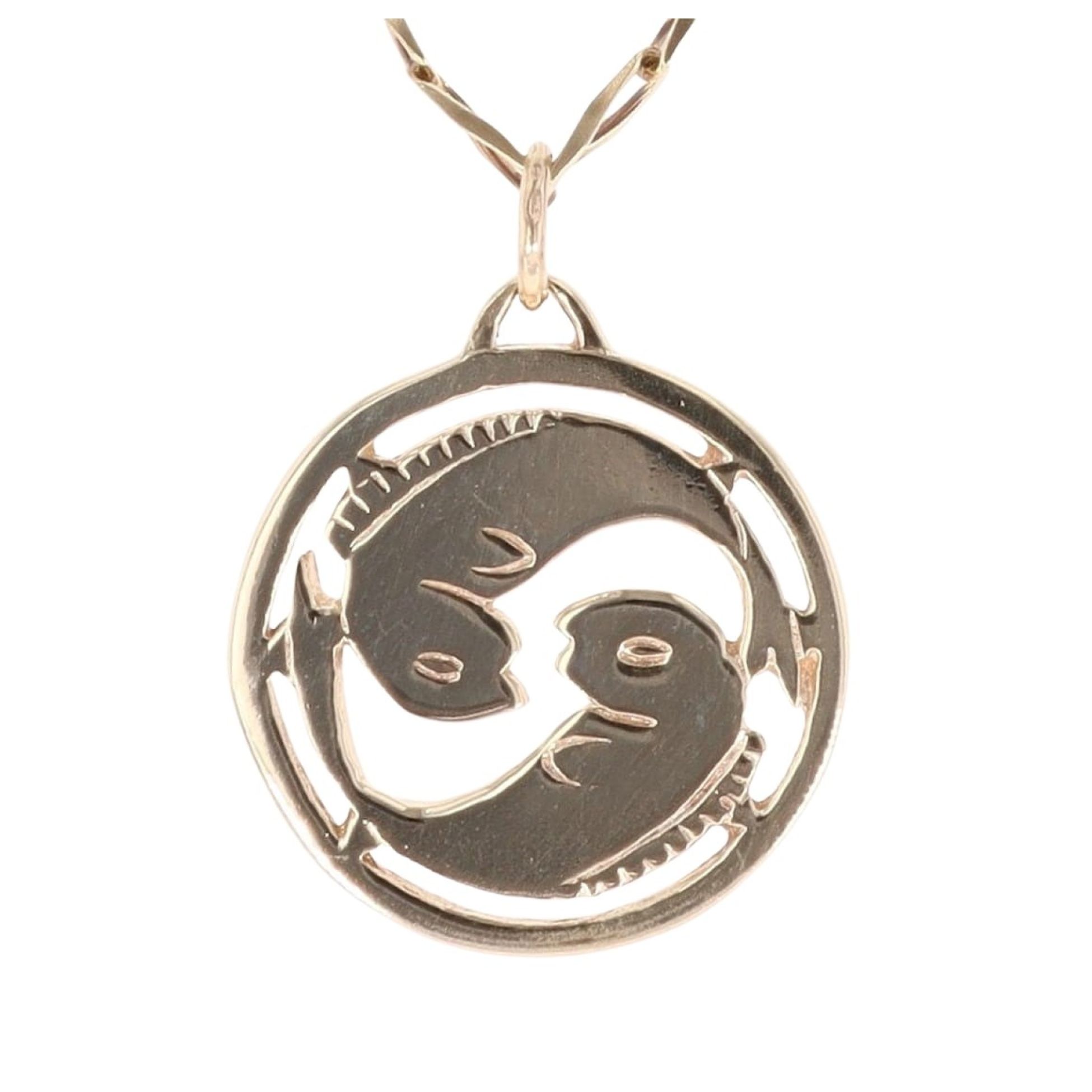 9ct Yellow Gold Pisces Zodiac Pendant and Curb Chain 22"