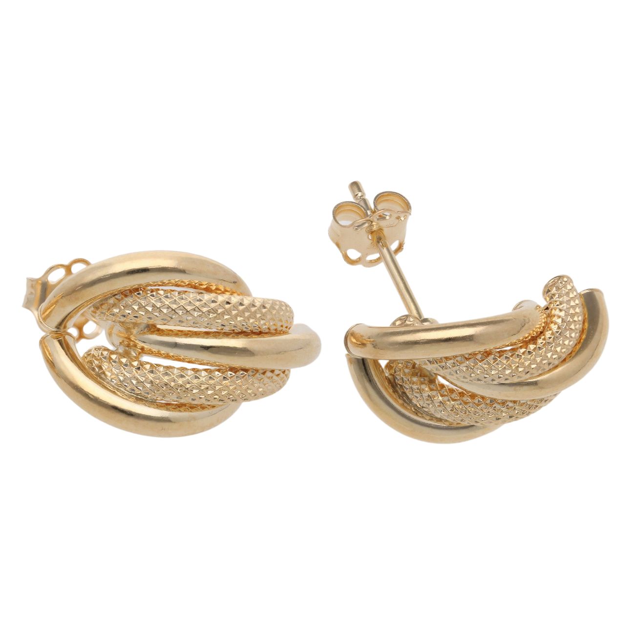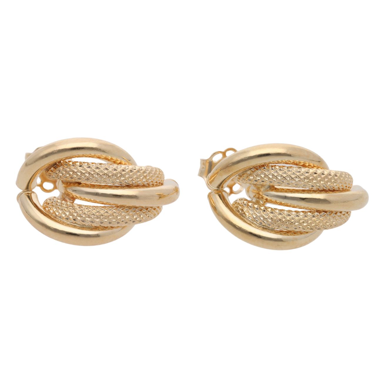 9ct Yellow Gold Plain And Mesh Stud Earrings