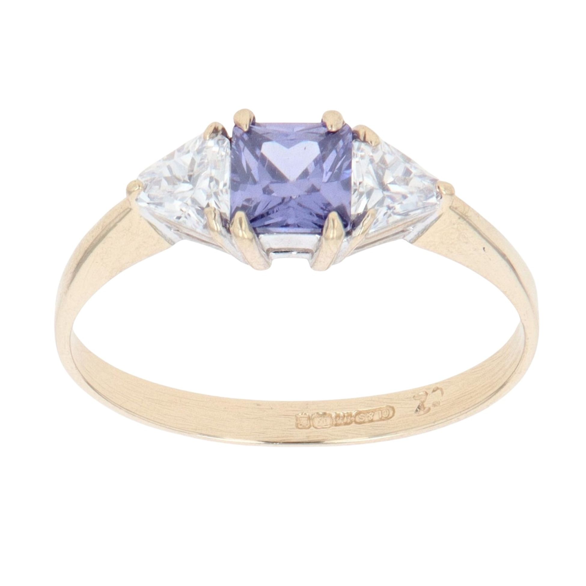 9ct Yellow Gold Purple and White Cubic Zirconia Ring