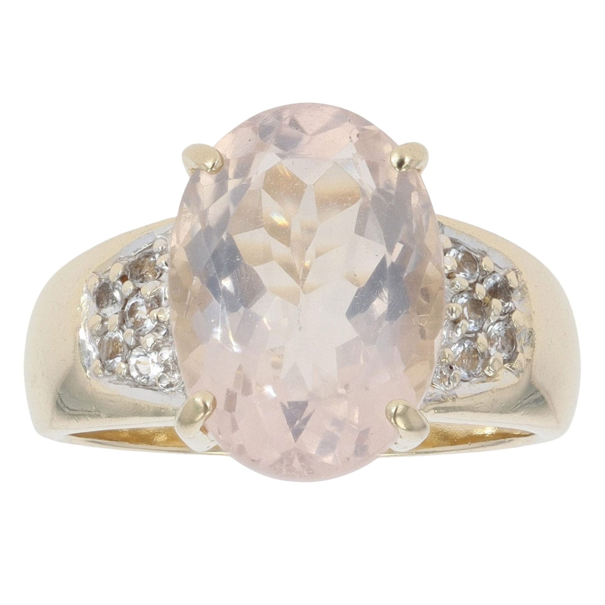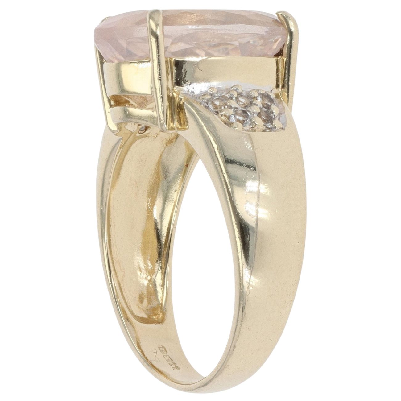 9ct Yellow Gold Rose Quartz And Cubic Zirconia Dress Ring