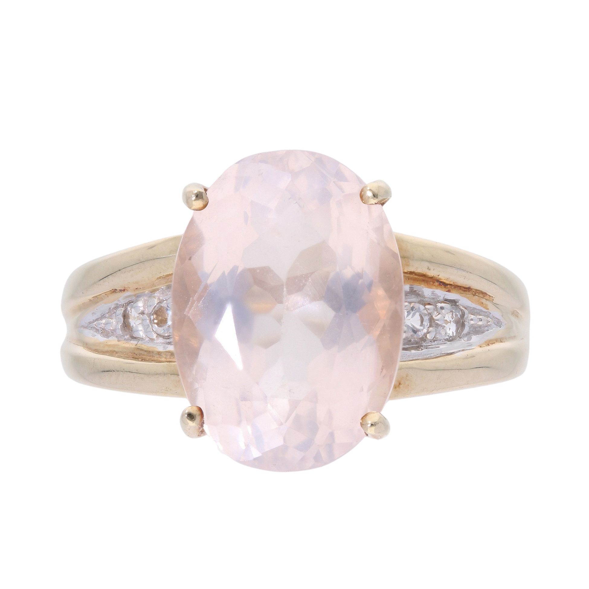 9ct Yellow Gold Rose Quartz And Cubic Zirconia Ring