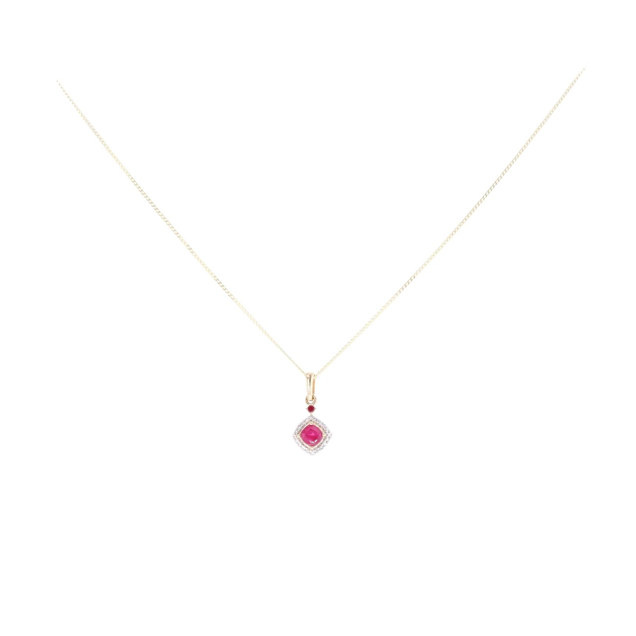 9ct Yellow Gold Ruby And 0.06ct Diamond Cluster Pendant And Chain 18"