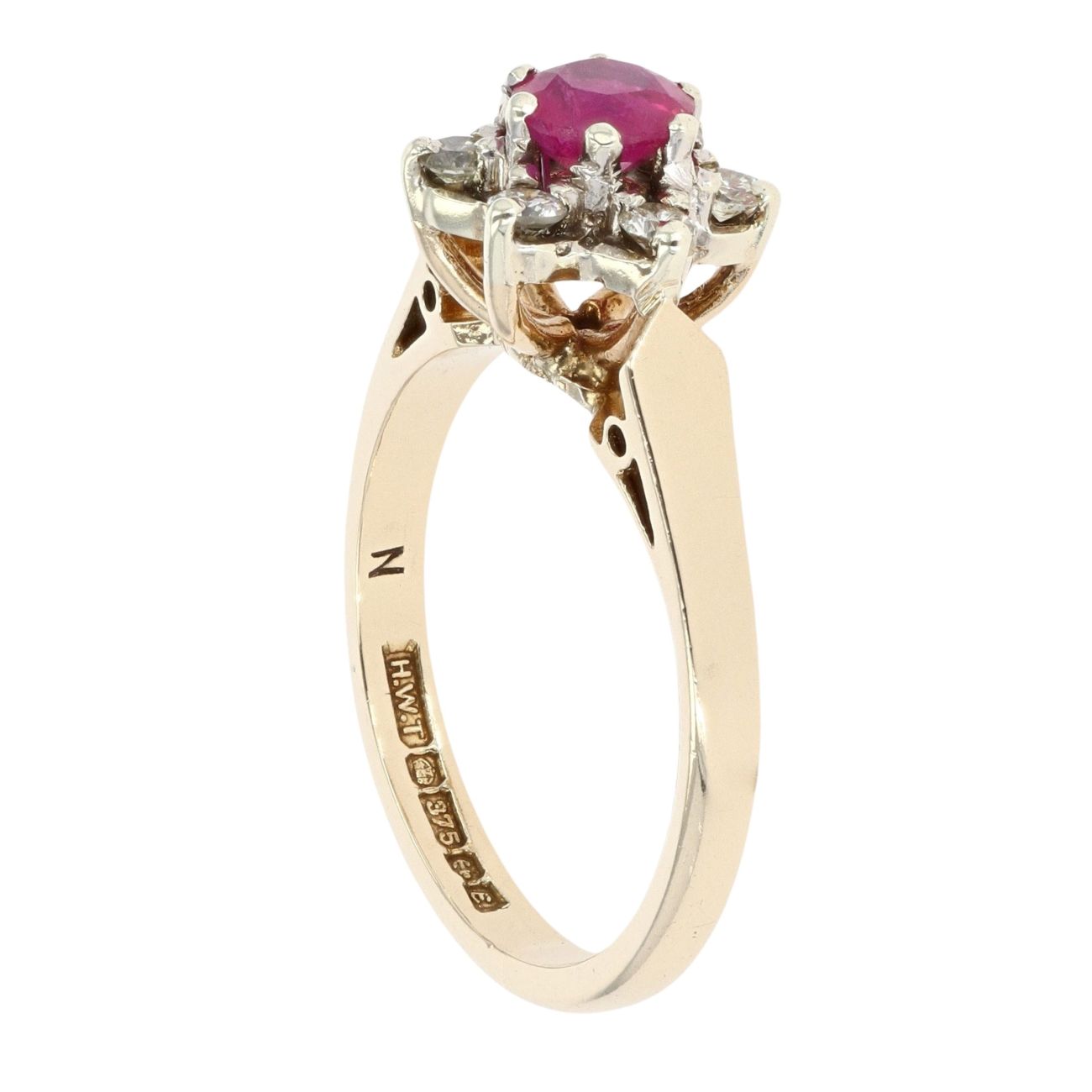 9ct Yellow Gold Ruby and 0.25ct Diamond Cluster Ring
