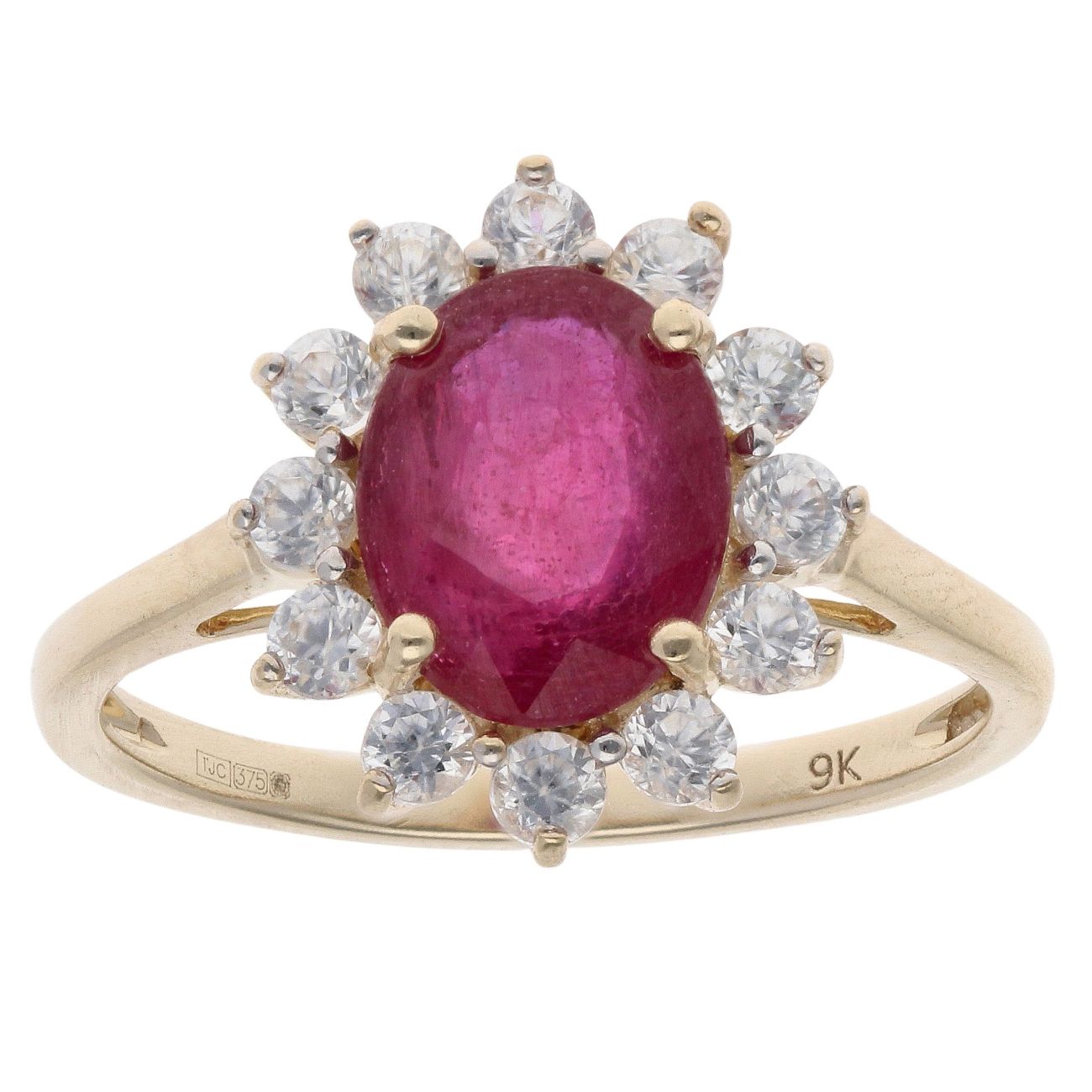 9ct Yellow Gold Ruby And Cubic Zirconia Cluster Ring