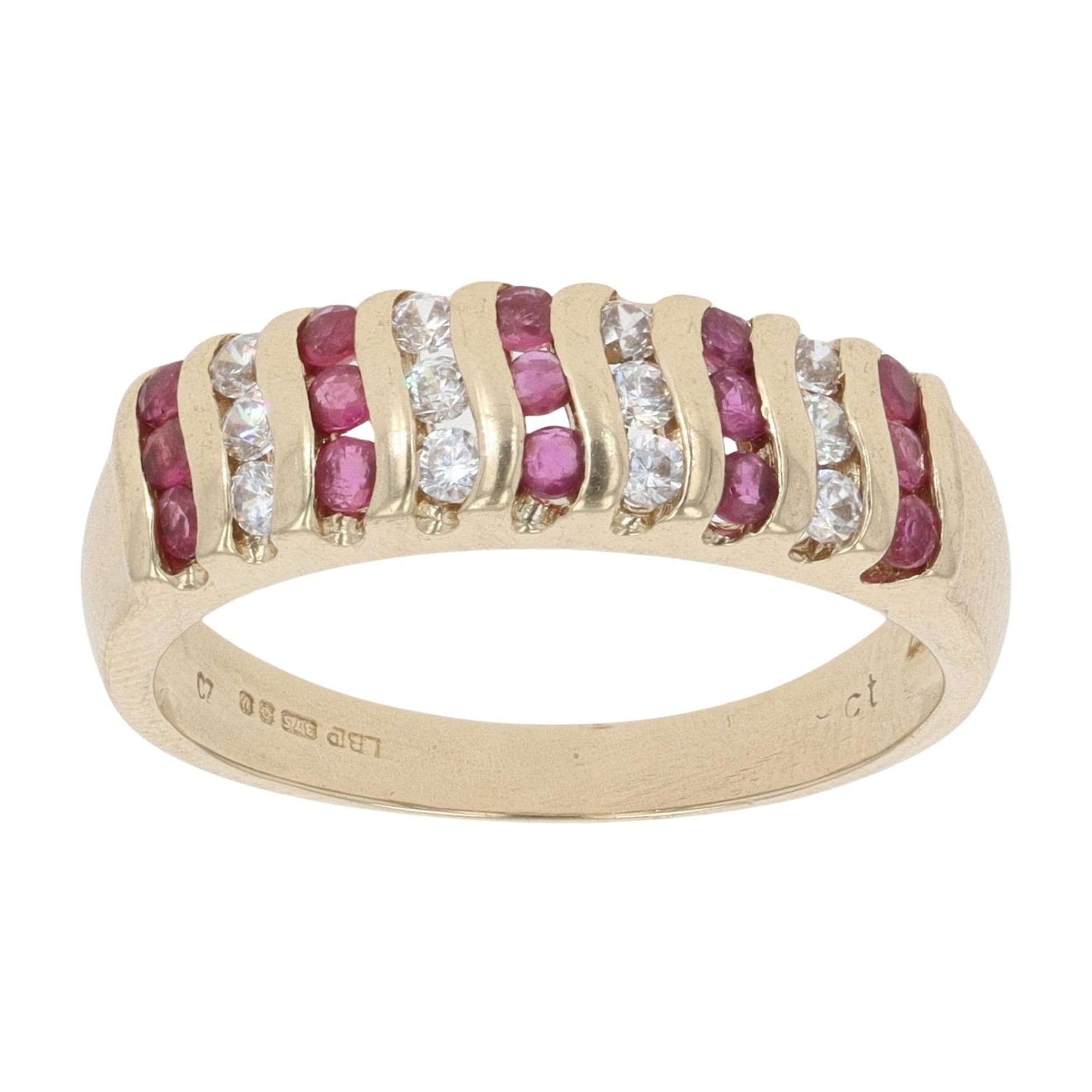 9ct Yellow Gold Ruby And Cubic Zirconia Wave Ring