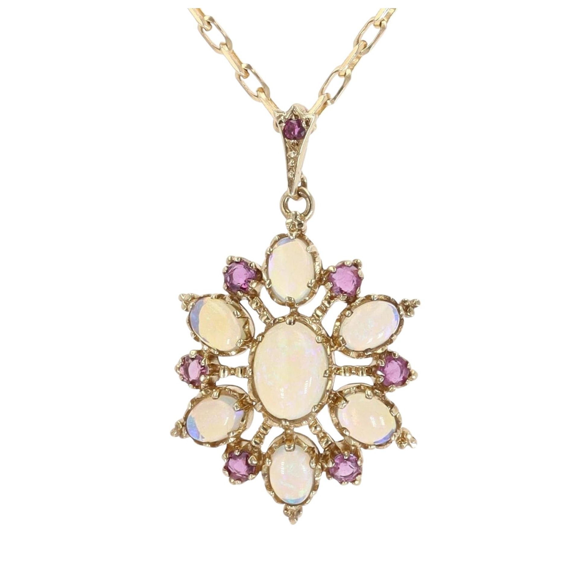 9ct Yellow Gold Ruby and Opal Pendant and Belcher Chain 18"