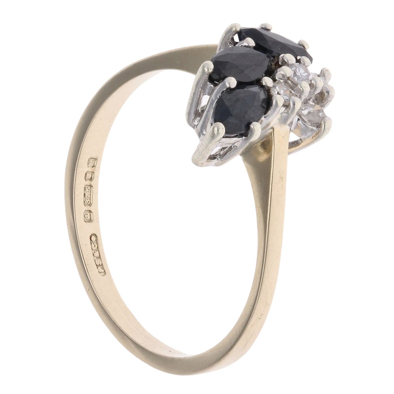 9ct Yellow Gold Sapphire and 0.05ct Diamond Fancy Ring